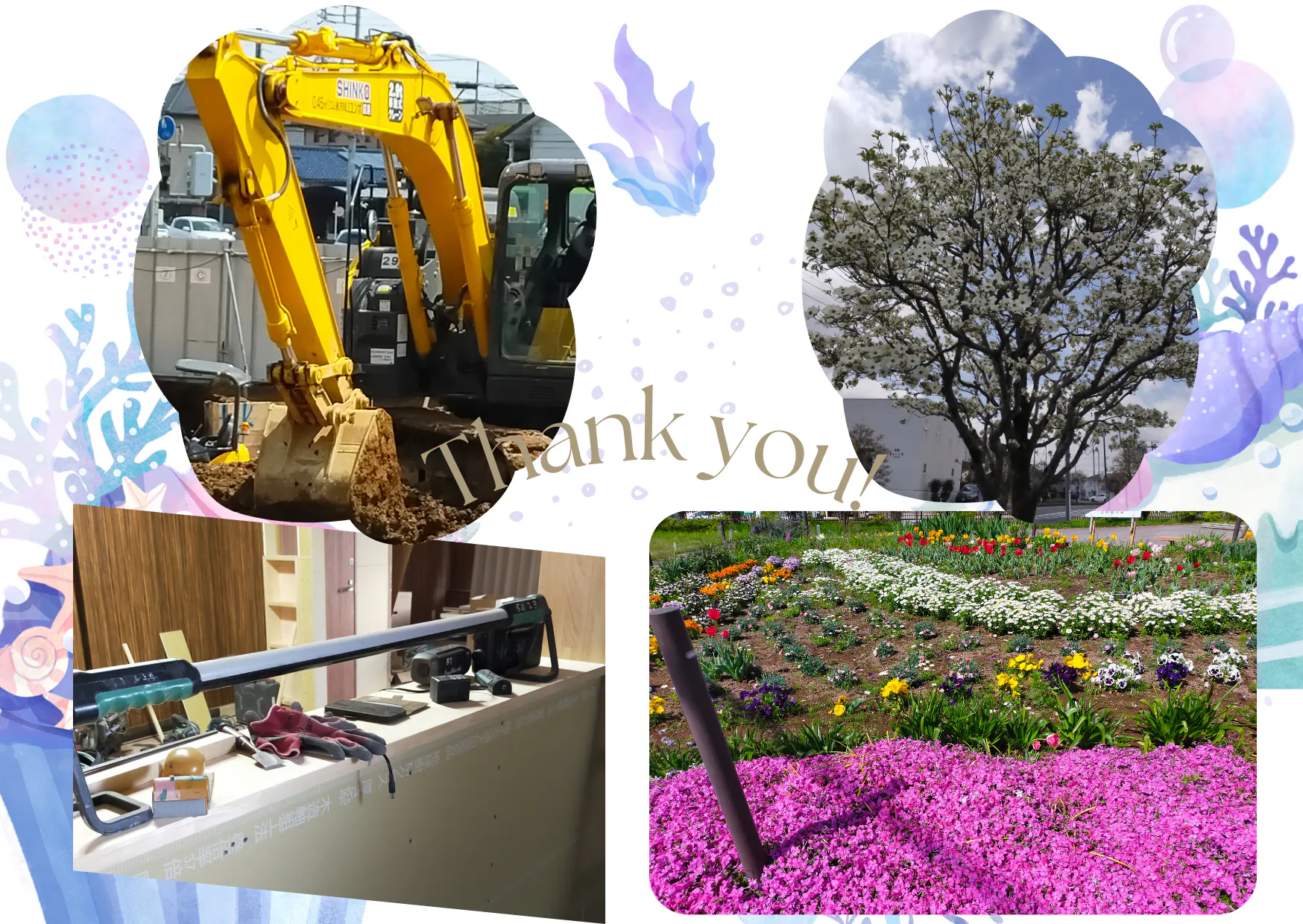 右下の写真は、守谷駅方面から商工会に向かった時に通る踏切近くのお花達です♪