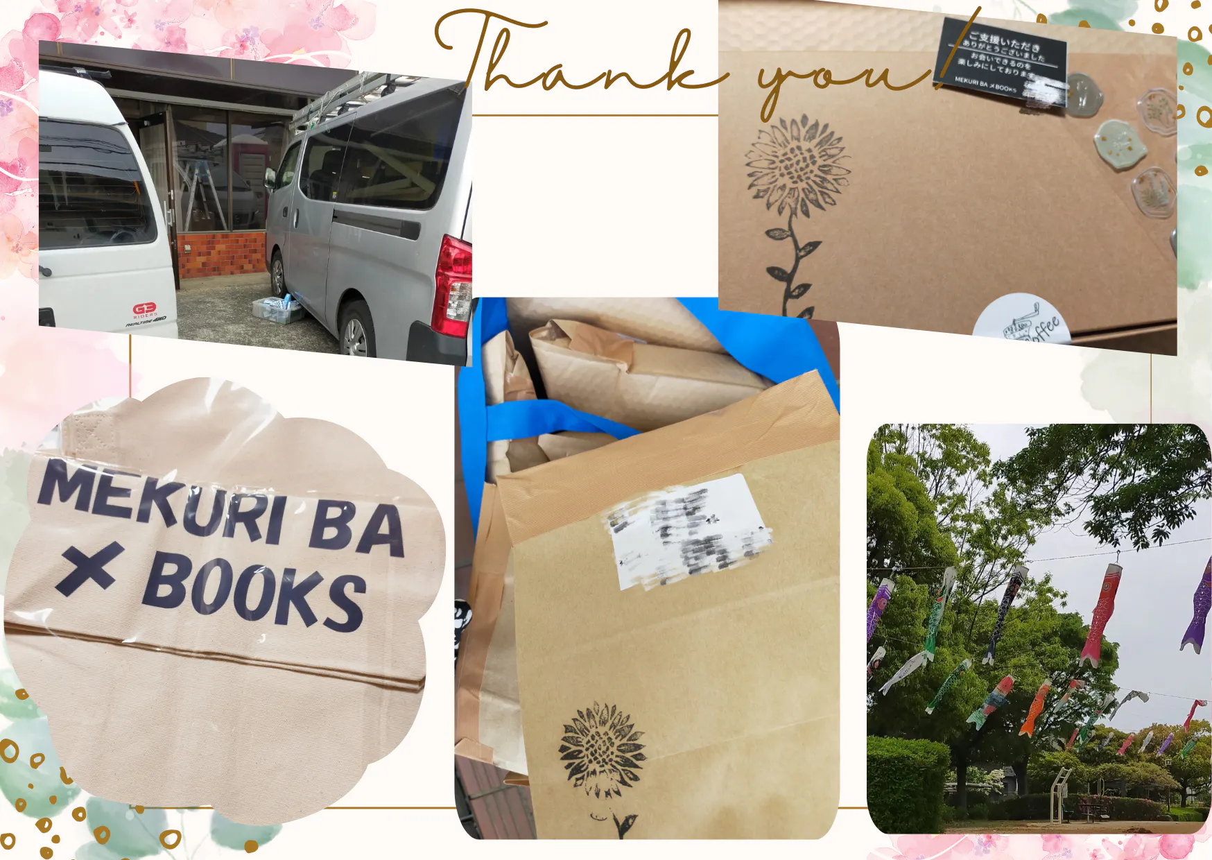 右上は、ドリップバック20個入りのアソートで、真ん中の写真は梱包した状態のもので、その中の手前の袋のは5個入りのもので、5個のものだけのものと、図書券とセットのものだったりします。