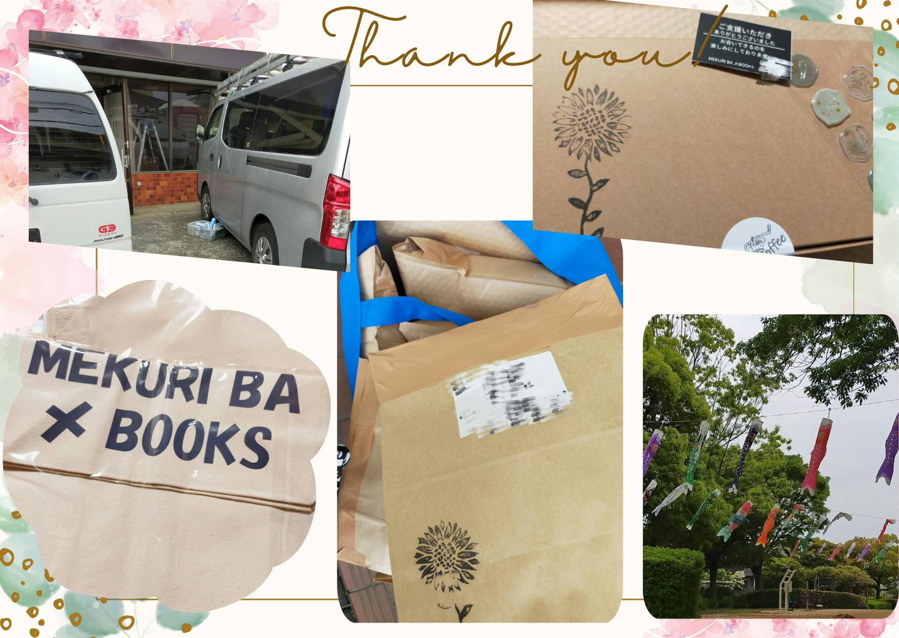 皆様、いつも応援ありがとうございます(^^)毎日、慌ただしくしておりますが、どうにか少しづつ前に進んでいると思っています。写真はリターン品の一部になります。左下は、メBOOKSの店名がプリントされたトートバックです♪右上は、ドリップバック20個入りのアソートで、真ん中の写真は梱包した状態のもので、その中の手前の袋のは5個入りのもので、5個のものだけのものと、図書券とセットのものだったりします。この梱包が不器用な私は大変で、最初の方にお送りした方、申し訳ありませんでしたm(__)m最後の方は手慣れてきてスピードもアップしてきたのが分かりました♪(綺麗かどうかは不明ですが(;_:)クリーニング店で頂いて開けていないバックがいくつもあったのを思い出し、軽くてよいなと梱包したものをバックに入れて2つのバックをかかえ何往復してきました。無事にお届けでき安心し、ホッとしました。(親戚の1名分も発送を済ませました)右下の鯉のぼりは、旅立った愛犬クッキーが元気な時によく行った公園です。旅立ってからは、郵便局に行く際には公園を通らないようにしていましたが、この日は郵便局の前に寄る所があったのと、荷物が沢山だったので必死で向かっていたためか、公園が見えてきてハッとして気付きました。でも最初はしんみりしましたが、思いがけず鯉のぼりが沢山あって嬉しい気持ちになりました♪くーちゃんも男子なので(^^;工事の方は、アクシデント多々ありますが、少しずつですが進んでいますし、開店までには間に合わせたいと思っていますので、皆さん見守っていてください。