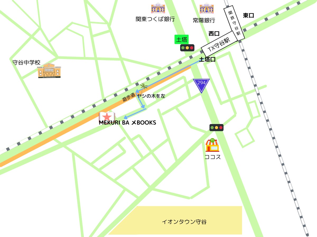 メBOOKSは、つくばエクスプレス(TX)守谷駅より徒歩6分の住宅街の中に位置しています。(土塔口か西口から6分に位置しています) ※3/13 表記と駅からの距離を加筆修正しました
