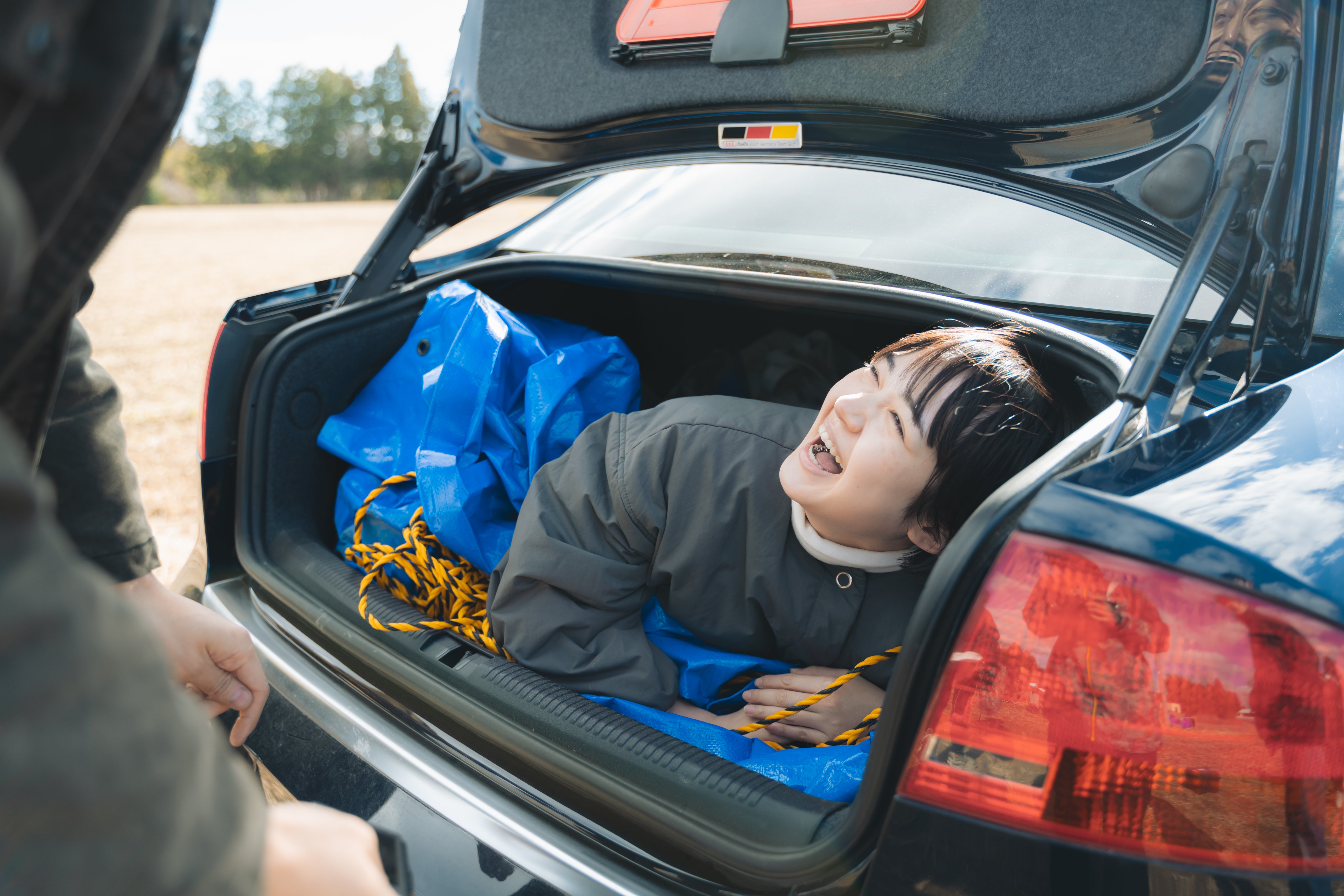 トランクから飛び出すシーンは、下にブルーシートやブランケットを敷いて安全を確保しつつ、実際にてつや役の山田さんに思いっきり飛びかかったのですが、しっかり受け止めてくださったので安心して飛びかかることが出来ました!
