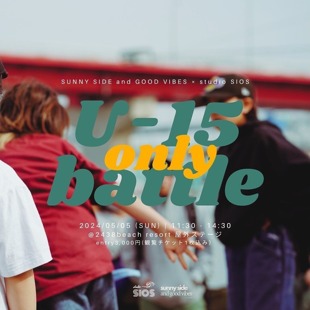 studio sios presents U-15キッズダンスバトル15歳までのみんなが挑戦できる 1v1 のソロバトルを開催!ジャンルは関係なしのオールスタイルバトル。スタジオの生徒様以外の方もエントリー頂けますので、是非皆様チャレンジしてみて下さい。—————SUNNY SIDE & GOOD VIBES × studio SIOSUnder15 only battle2024/05/05 (Sun)ENTRY 11:00START 11:30@2438beachresort兵庫県西宮市西波止町1-2⬛︎Entry3,000円 (キッズSUNフェス入場券 1枚付き)※今回フェス内のステージにて開催のため、高校生以上の方は入場券が必要となります。エントリー1名につき保護者様分として1枚付いてきます。追加が必要な場合は1枚単位参加者価格にてご購入頂けます。(当日エントリー時に必要枚数をお申し付けください。)・参加方法 | studio SIOSのInstagram リンクからエントリーをお願いします。@studio_sios⬛︎ PLIZEWINNER 賞金 & 賞品 & ボード2nd PLIZE 賞品 & ボードJudge PLIZE ボード(参加者の中からピックアップされます)⬛︎ Under-15 only 1v1 BATTLEjudge | Bunji, hiroto, MARINO⬛︎DJLef_T【会場エリアマップ】