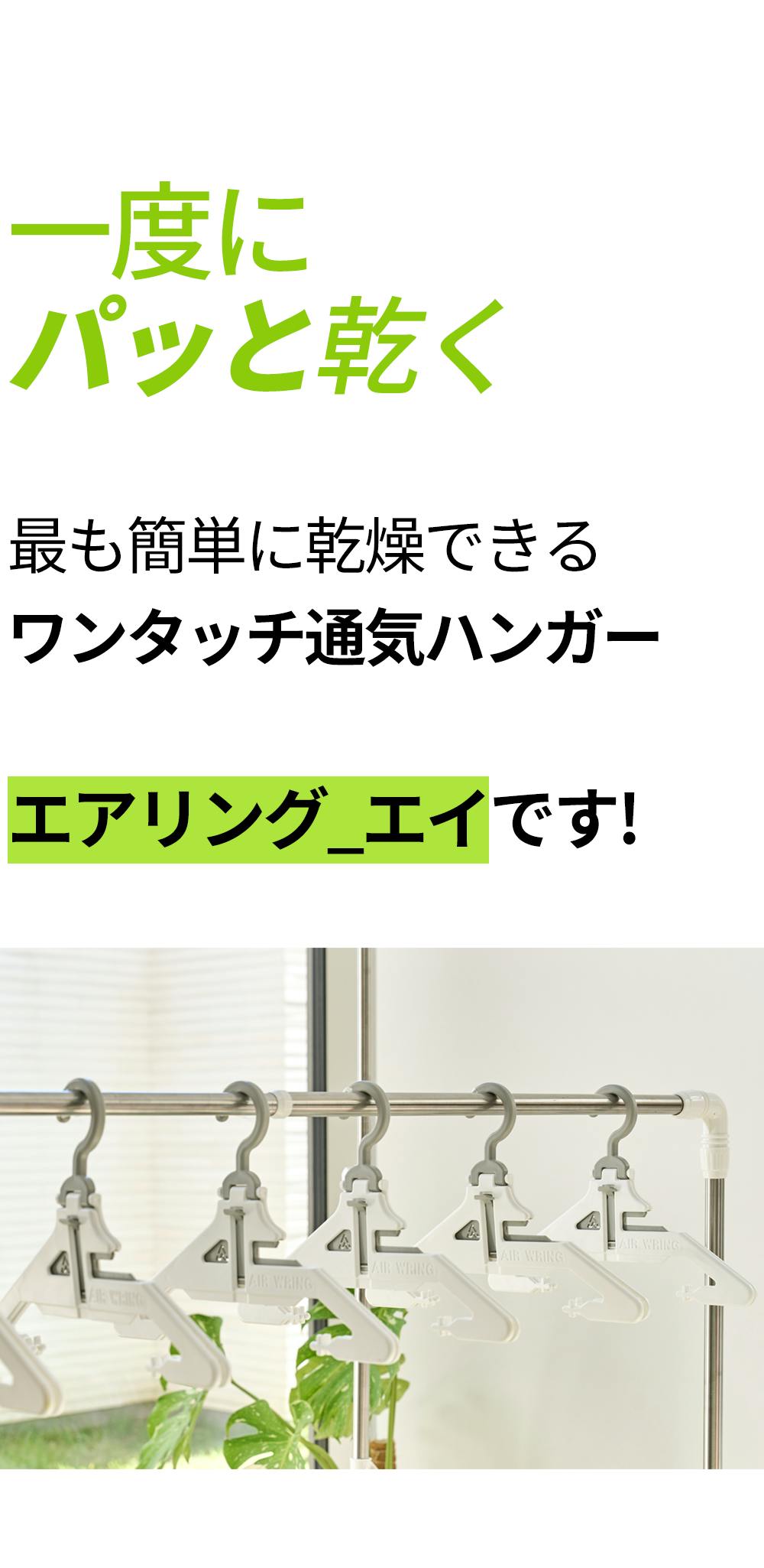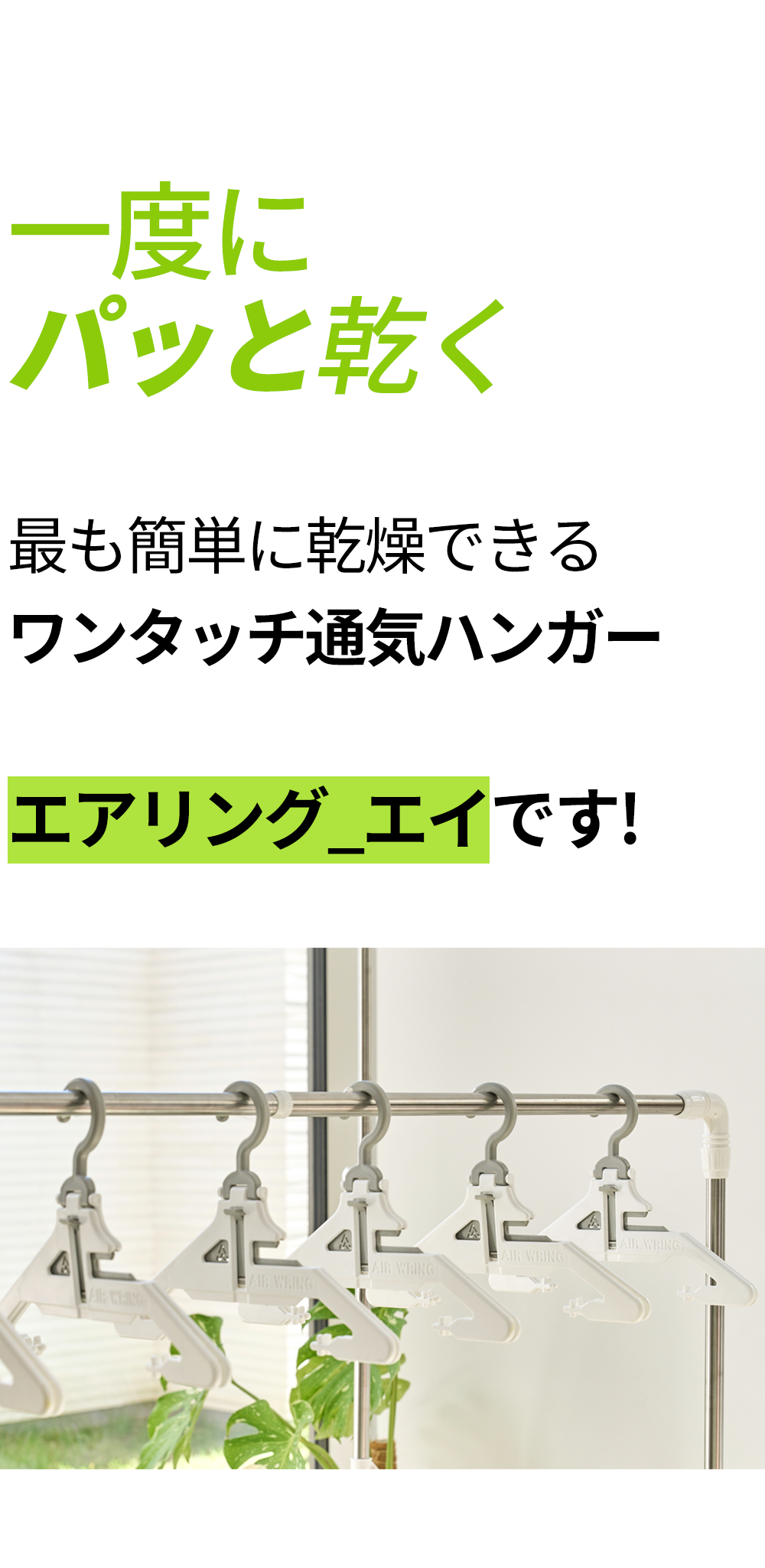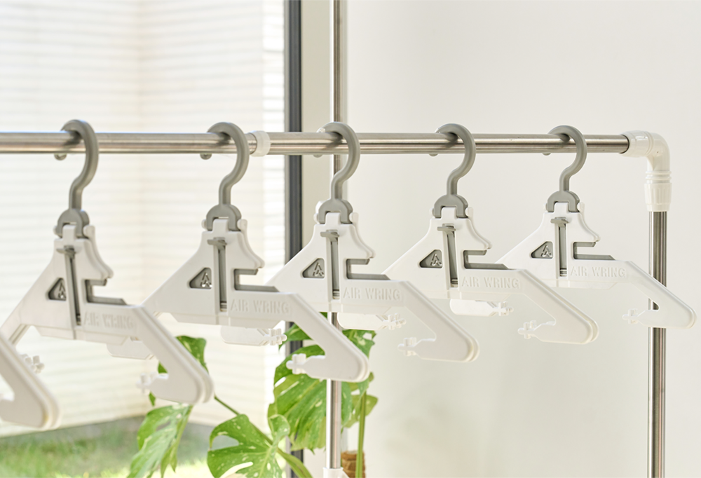 風通しのいい構造で作られているので、洗濯物が長時間乾かない心配を減らしてくれる「エアリング_エイ(AIR WRING_A)」是非お試しください。