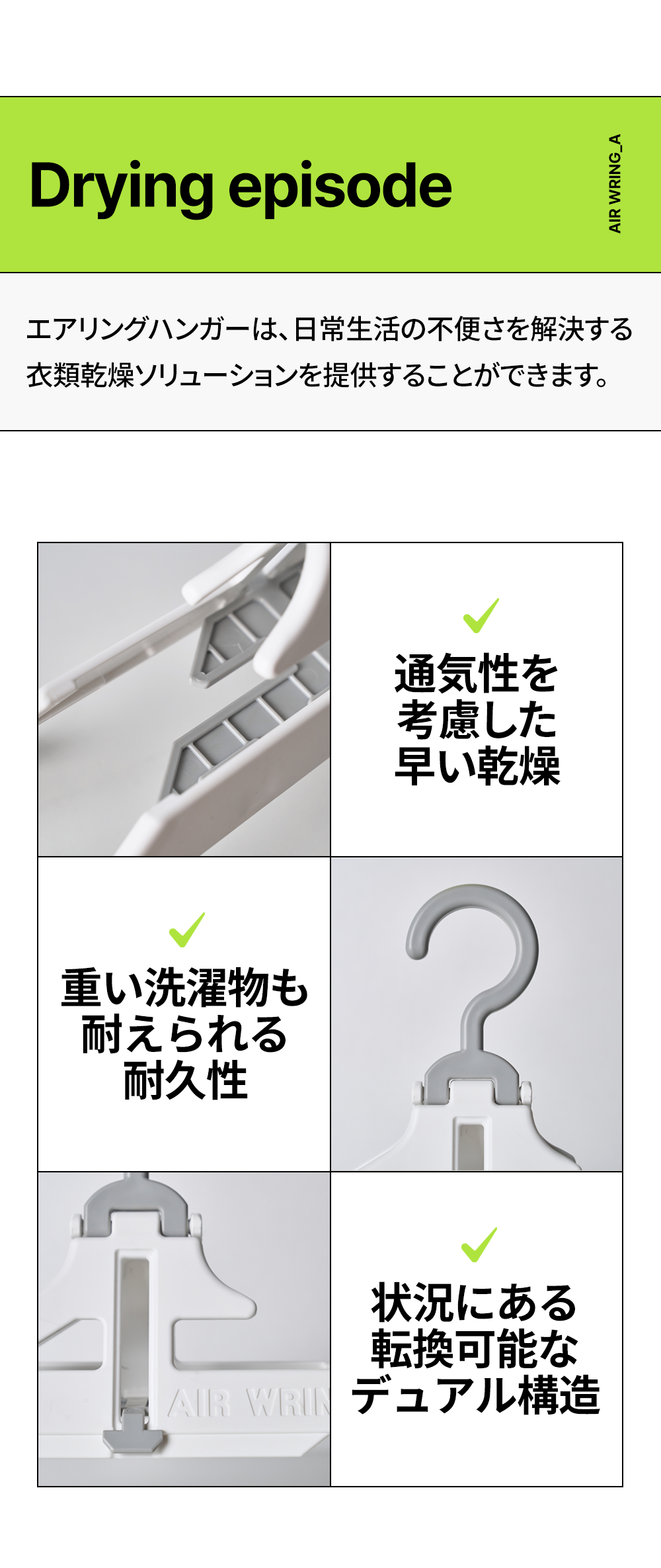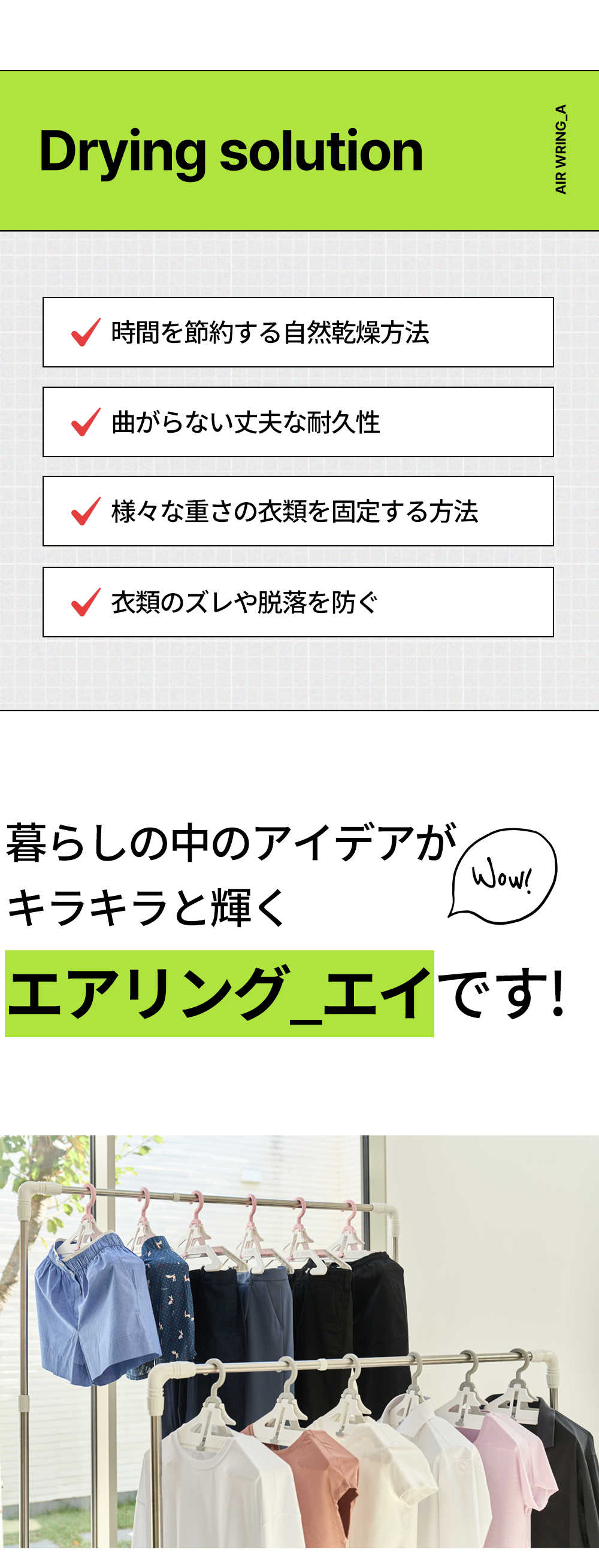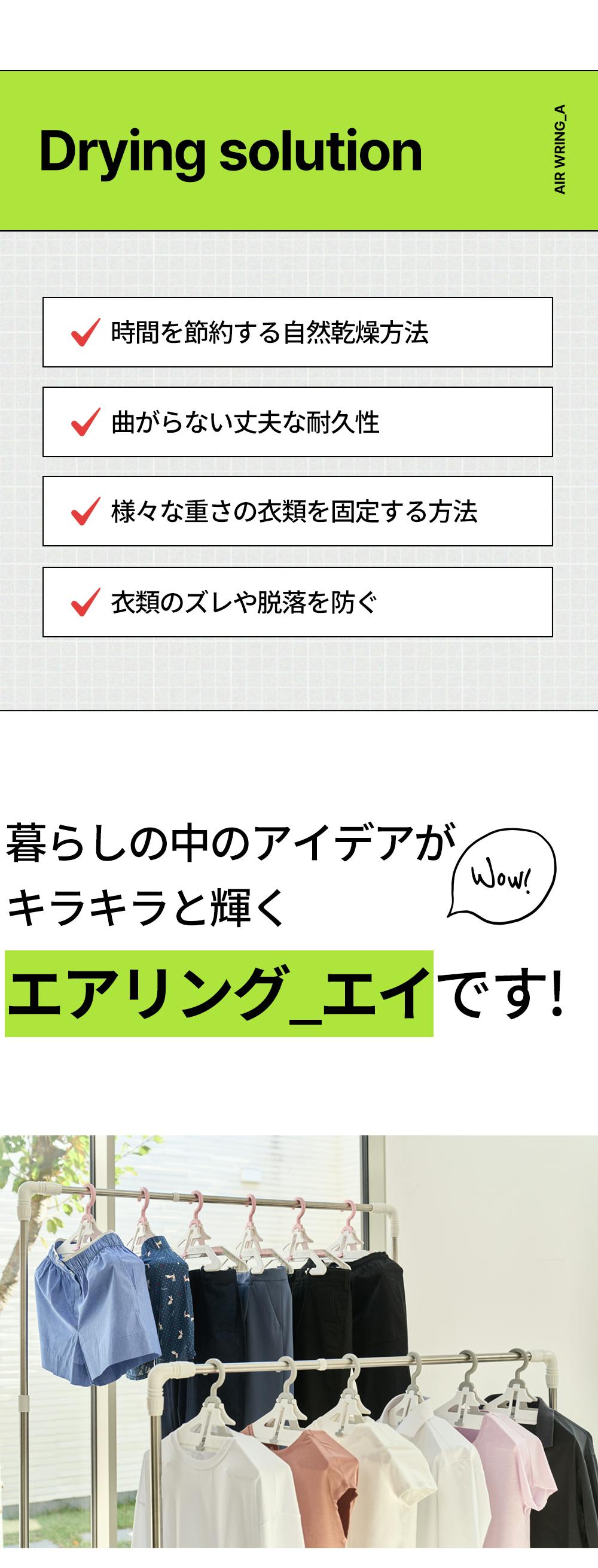 風通しのいい構造で作られているので、洗濯物が長時間乾かない心配を減らしてくれる「エアリング_エイ(AIR WRING_A)」是非お試しください。