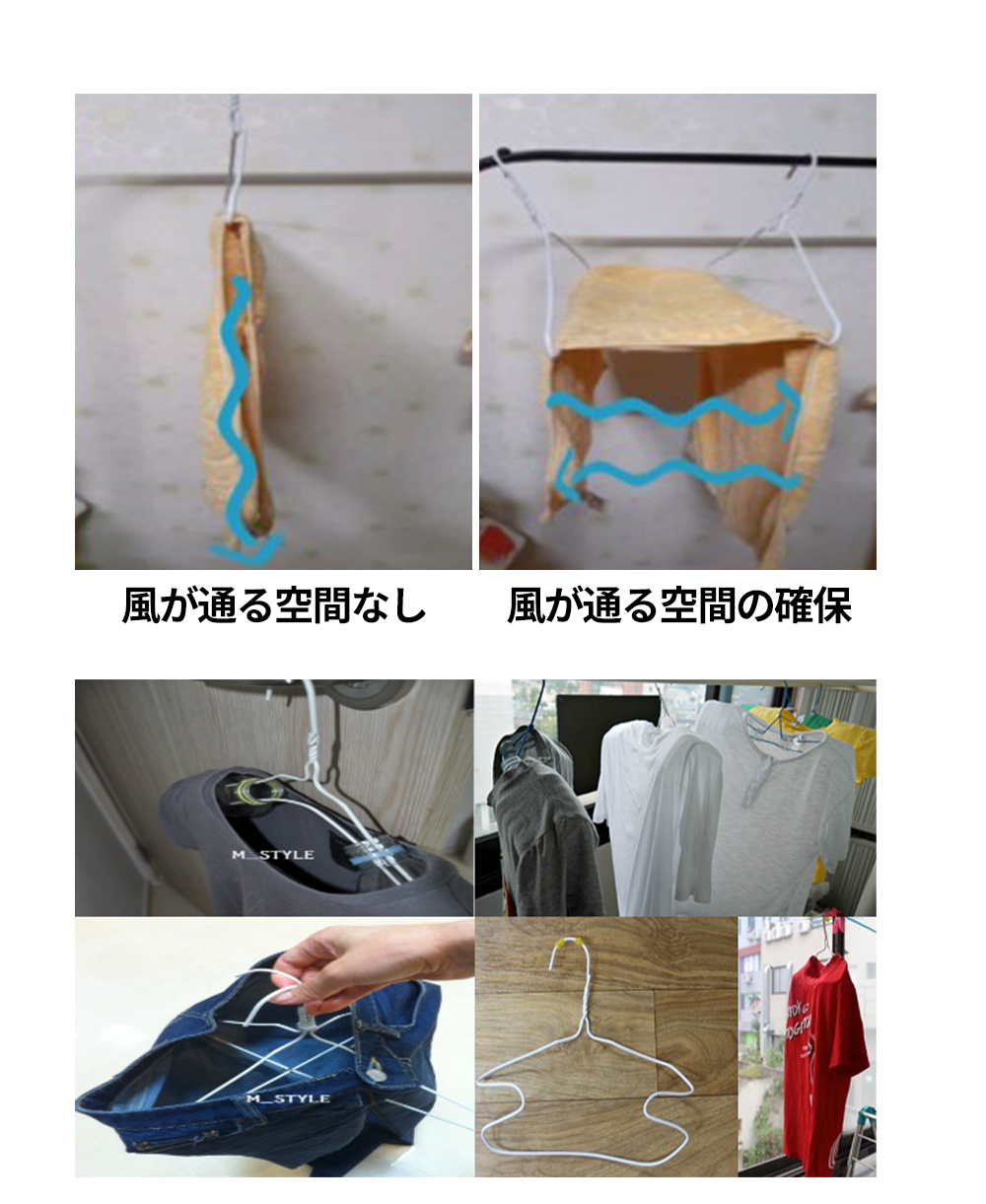 そのうちに洗濯物の臭いの原因は薄く固定されているハンガーフレームにより濡れている服の内側があたってしまい、風が通らなくなることに気づきました。円滑に風が通らないことで乾燥時間が長くなるのはもちろん、いろんなばい菌や細菌増殖に繋がり臭いがすることになります。
