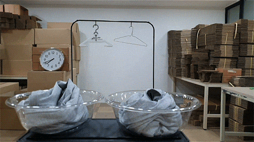 *それぞれ500mlのお水を吸収させ、光と風を同一条件で乾燥実験を行ってみました。