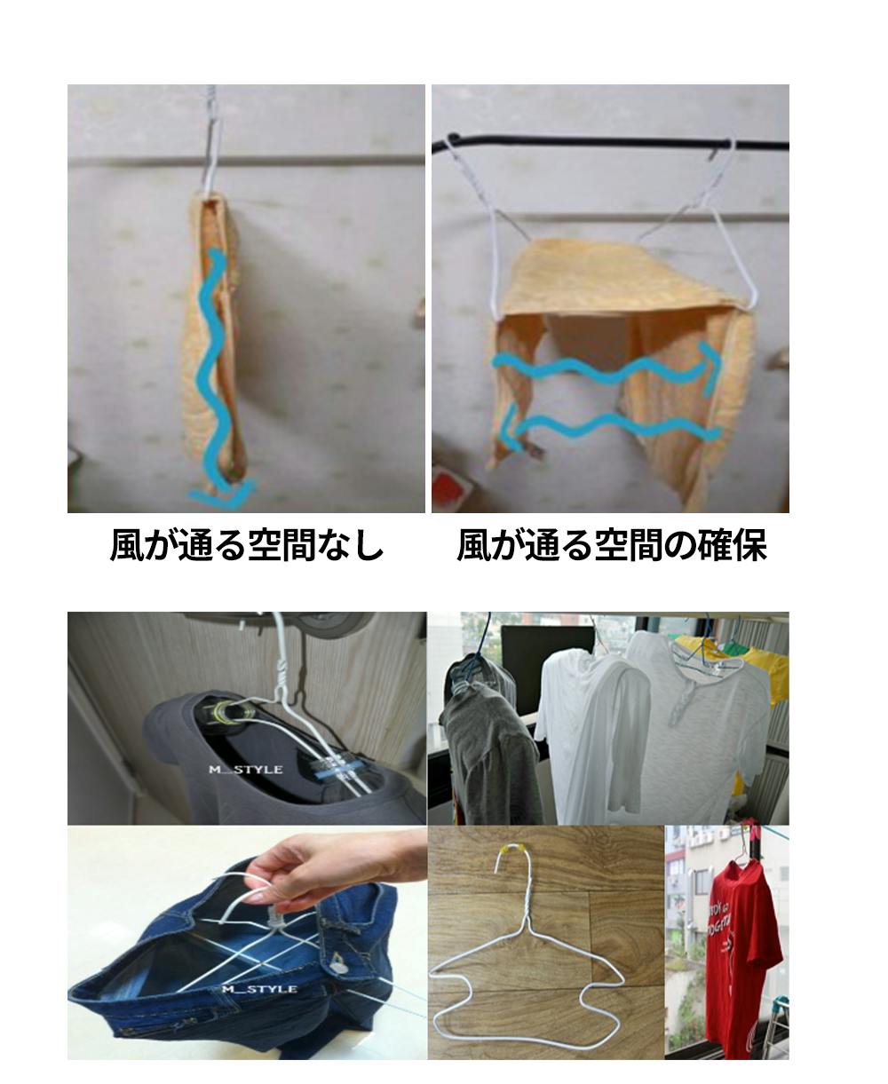 既存の製品は使うのに面倒だったり、上下兼用で使える製品がなかなかなくてハンガーを使い分けしなければならない場合が多かったです。 また、部分的にスペースがあり、全体的には風通しがよさそうには見えませんでした。