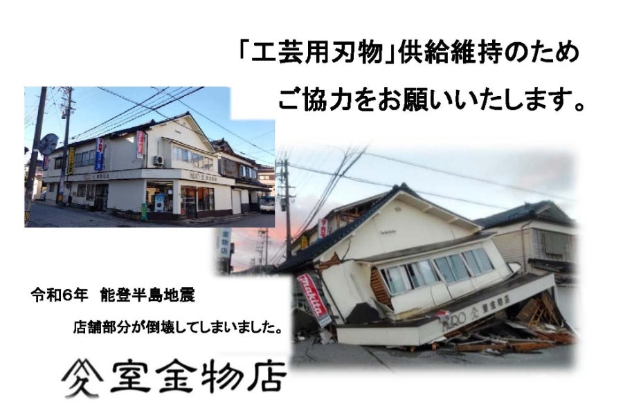 残念ながら店舗部分の倒壊により 棒ノミの製造を追加で発注する余力がありません。現在 残った在庫で対応するしかない、状態です。今回のように急に数量が必要な状況に対応することが難しくなっております。またすでに 他県の研修施設からの問い合わせが入っており 現状の数量では道具を失ってしまった方にまで十分に行き渡らないことが予想されています。