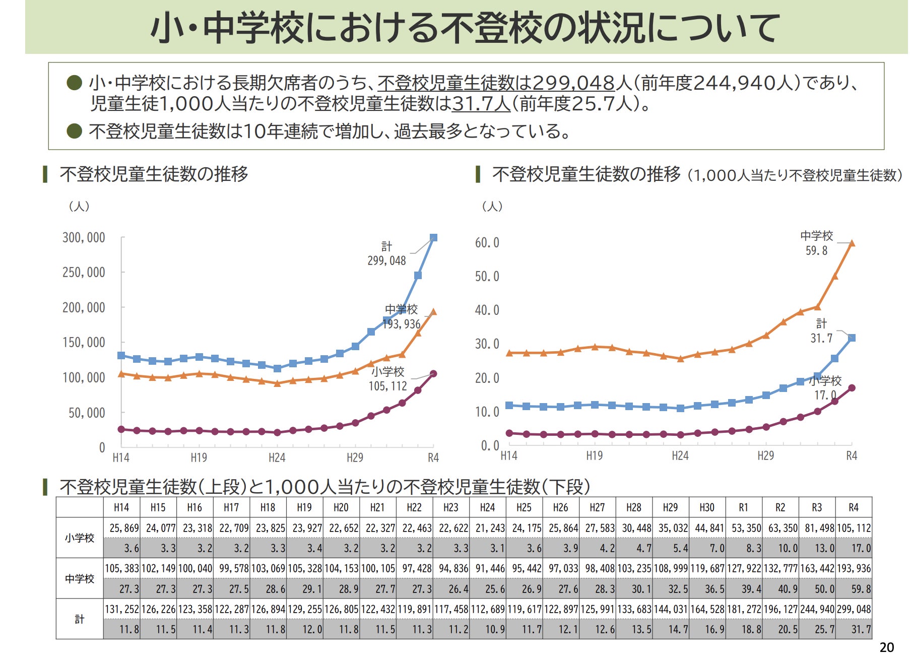 実際に、近年不登校の子どもの数は増加し続けており、2022年度の小中学校における不登校者数は29万人を超え、過去最多となりました。