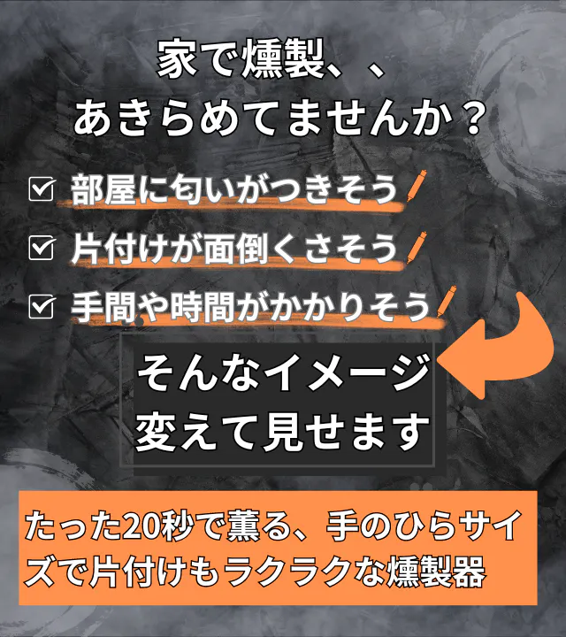 さあ、あなたも小型燻製器で”素晴らしい燻製ライフ”を手に入れよう!
