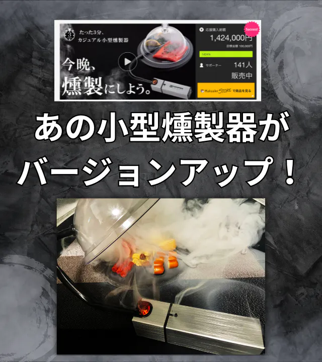 2023年ご支援いただいた金額140万円、140名を超えるサポーターの皆様から支持された小型燻製器がバージョンアップして新登場!!