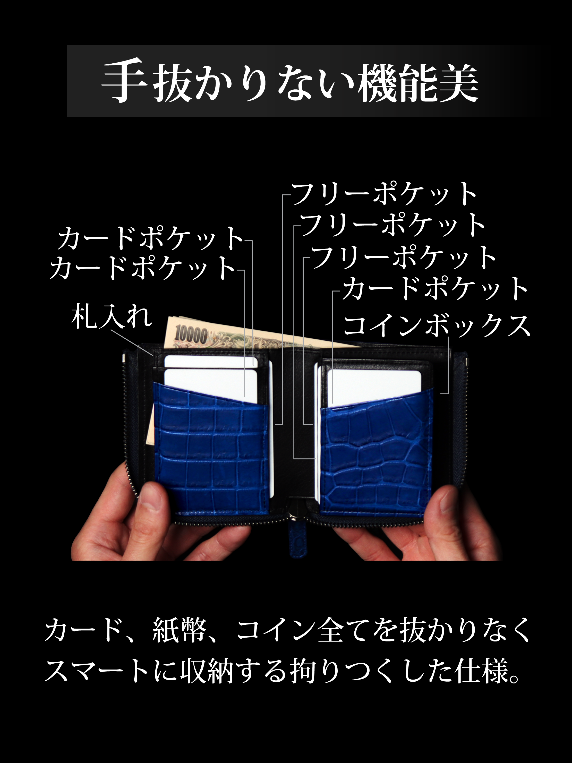 ※各カード・フリーポケットに2枚ずつ入れれば合計12枚のカード収納可能。