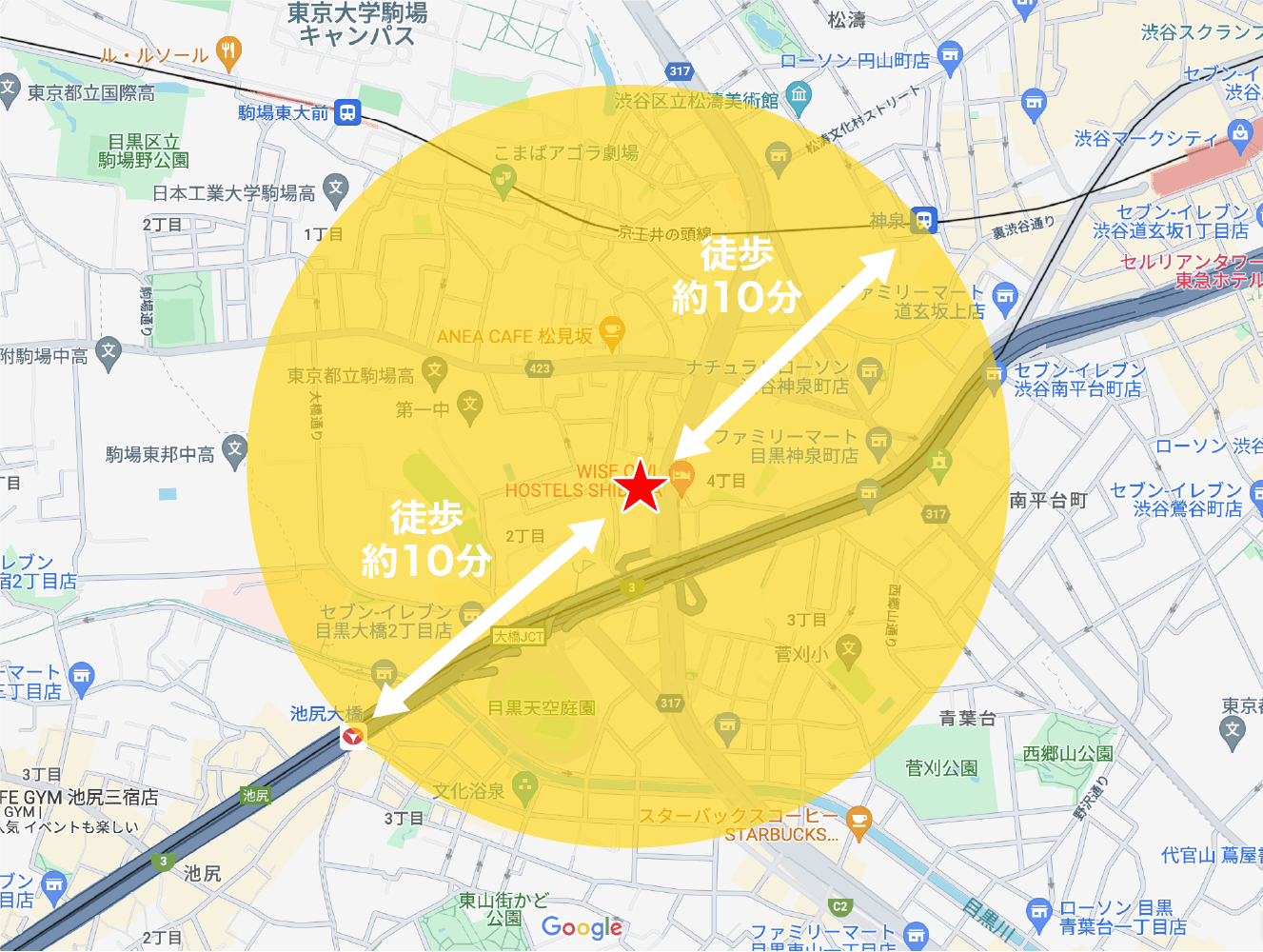 場所は「池尻大橋駅」と「神泉駅」のちょうど真ん中あたり。