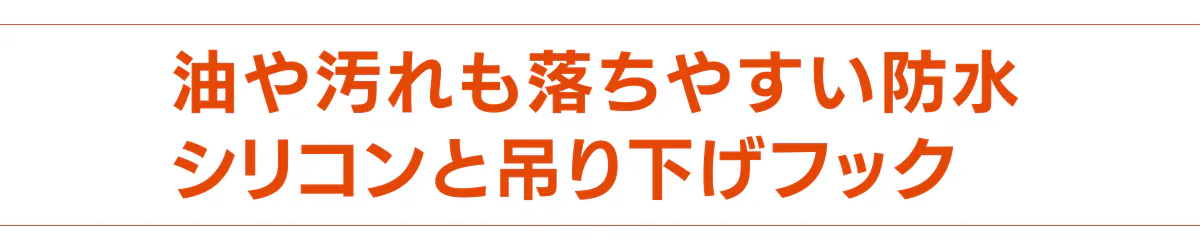 お手入れがとても簡単で、水、油、汚れに強く、それらに付着したものはすべて水で洗い流すだけでOK。