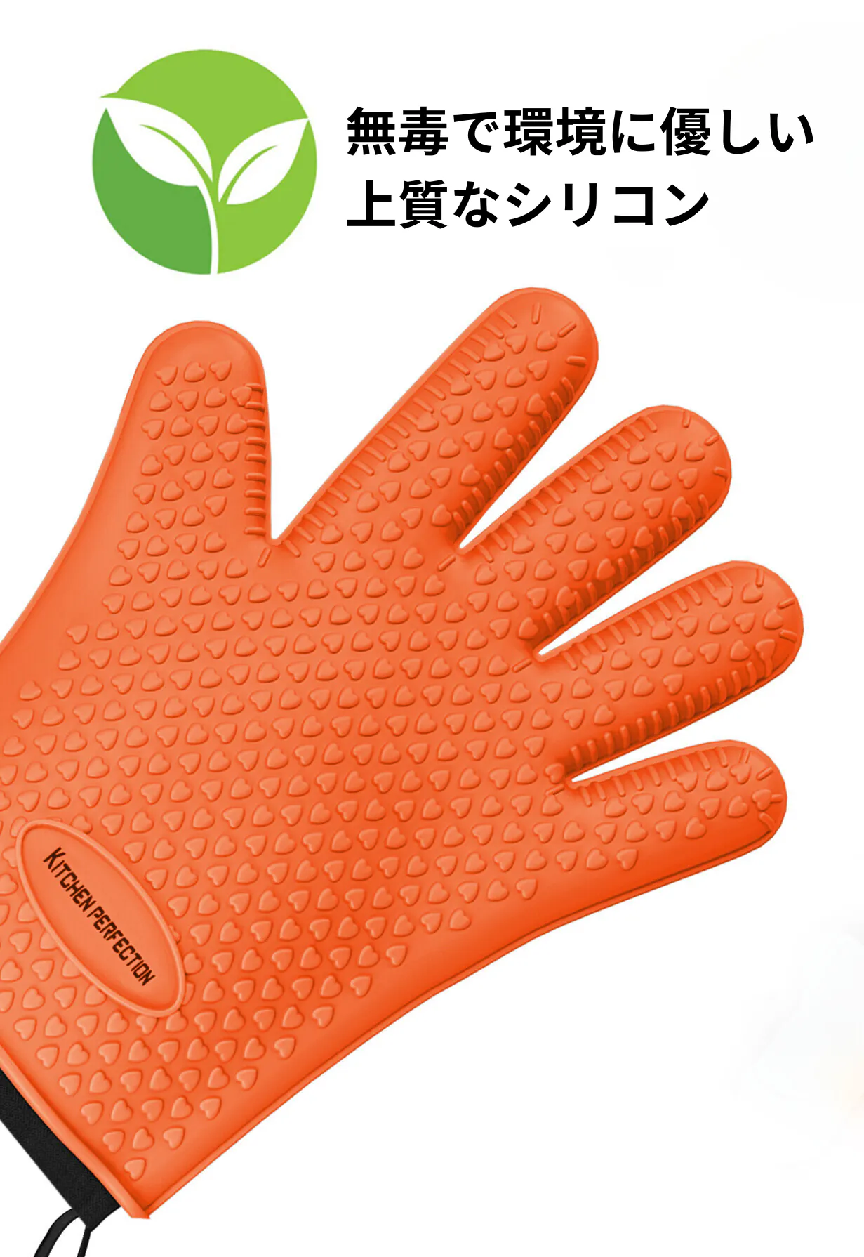 キッチンパーフェクションは、大きな手にも小さな手にもフィットしやすいように設計された優れた耐熱グローブです。