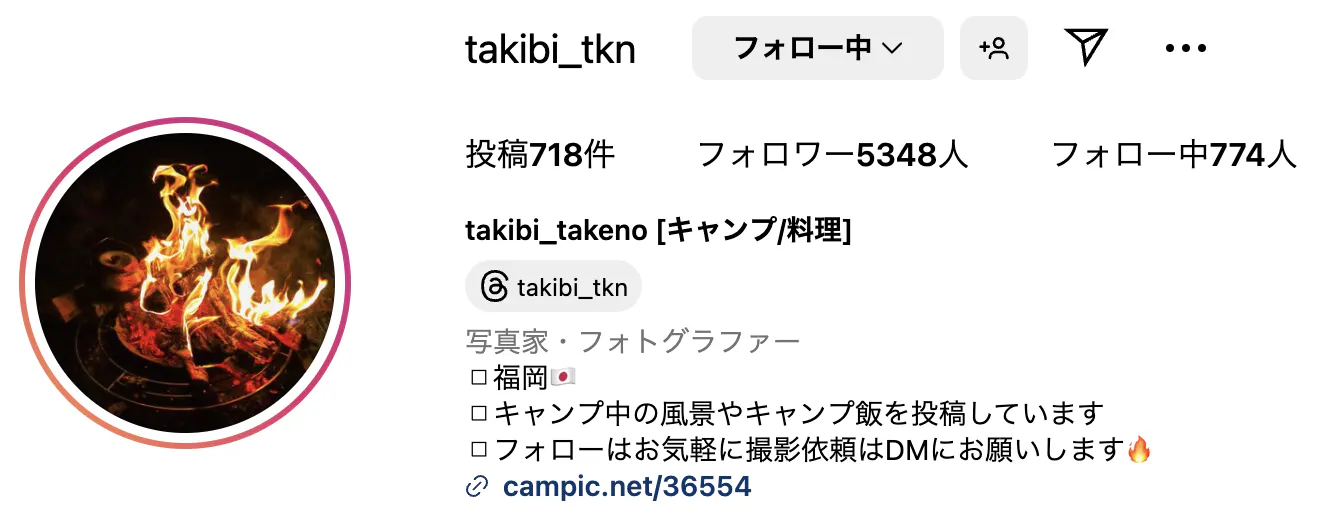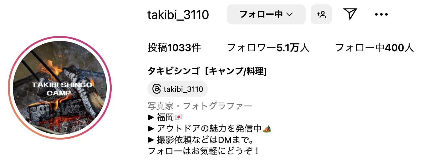 takibi_takeno [キャンプ/料理]様のInstagramのリンクはこちら