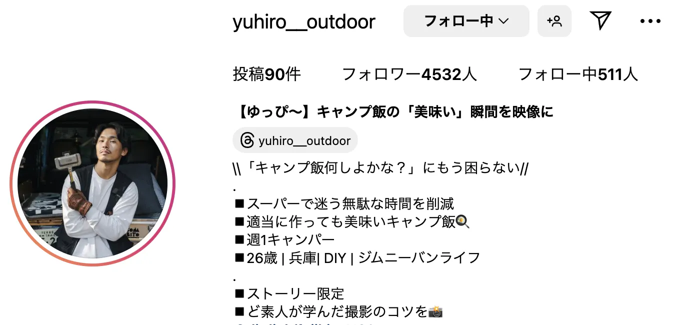 【ゆっぴ〜】キャンプ飯の「美味い」瞬間を映像に様のInstagramのリンクはこちら