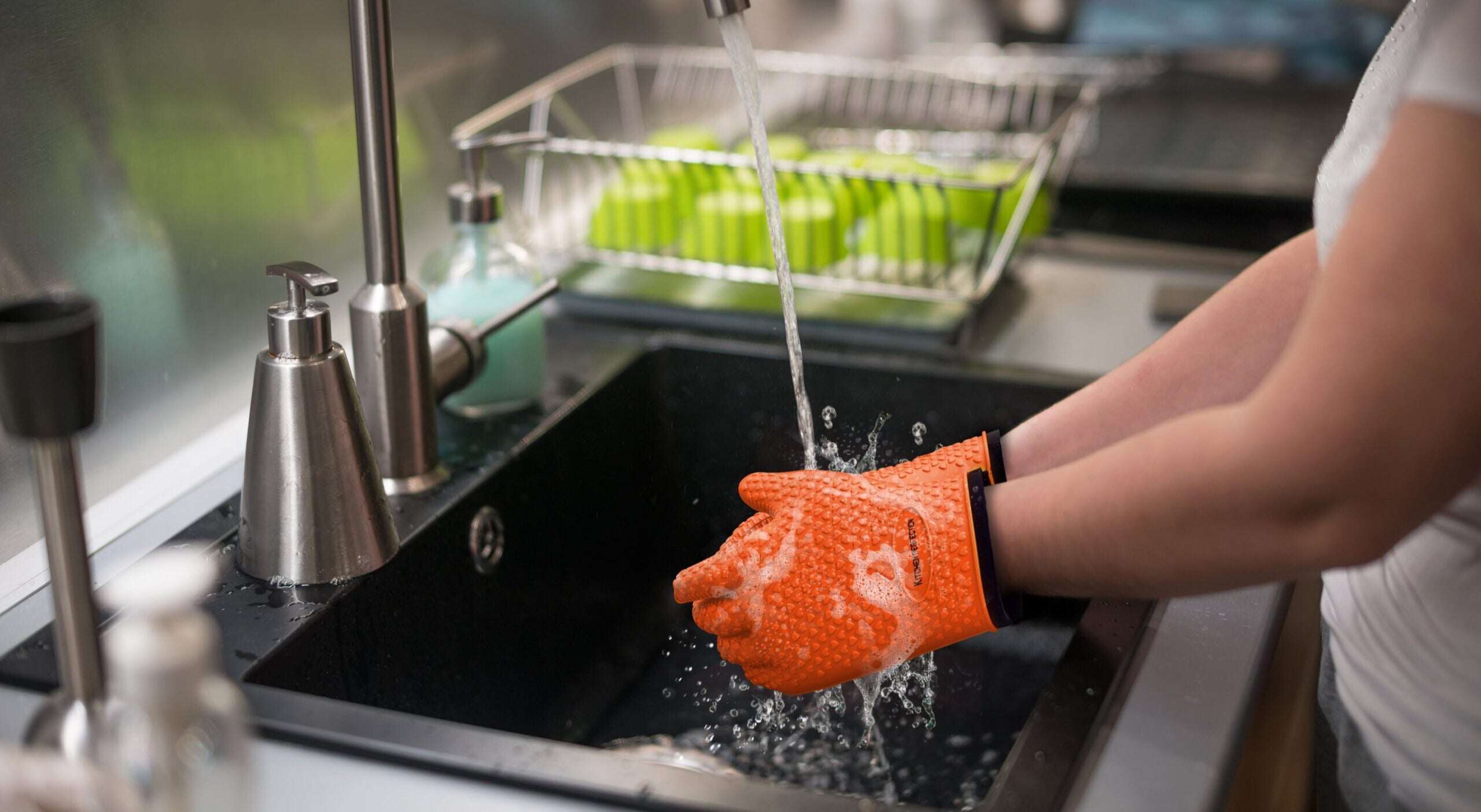 キッチンパーフェクションは、シリコンに美しいテクスチャパターンと、5本の指でもグリップしやすい強力なドットデザインで設計。