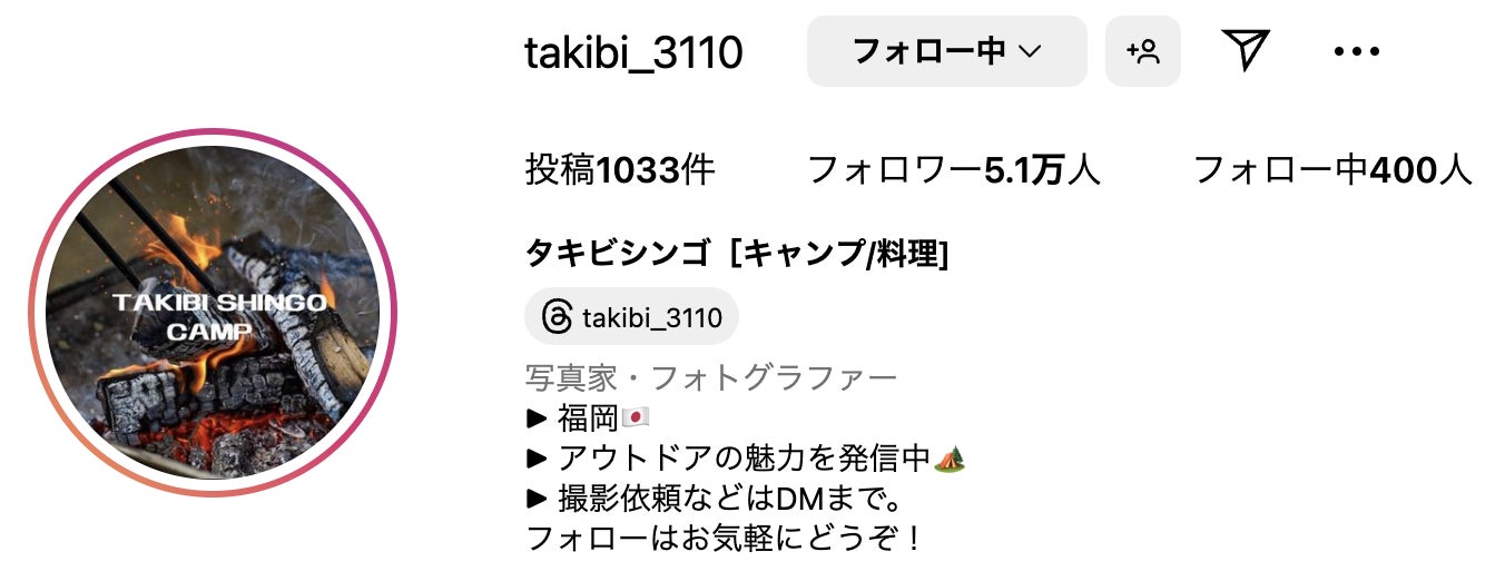 takibi_takeno [キャンプ/料理]様のInstagramのリンクはこちら