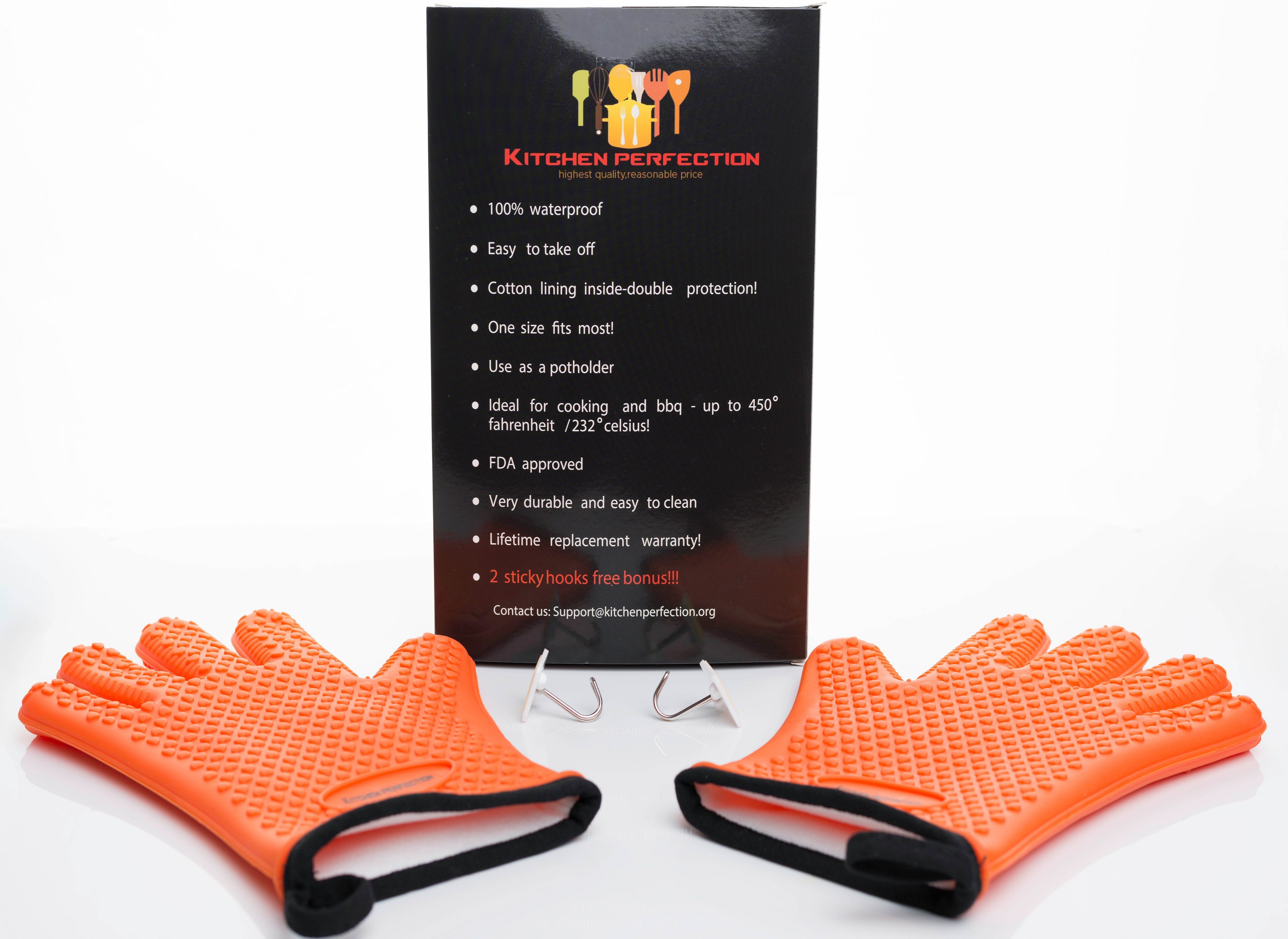キッチンパーフェクションは、大きな手にも小さな手にもフィットしやすいように設計された優れた耐熱グローブです。