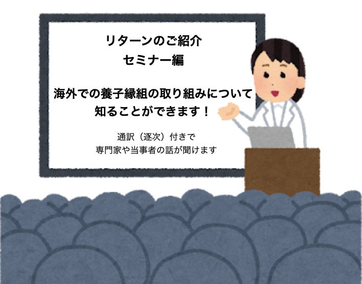 まず、セミナーを行う目的は「海外での養子縁組の取り組みを知る」ことです。