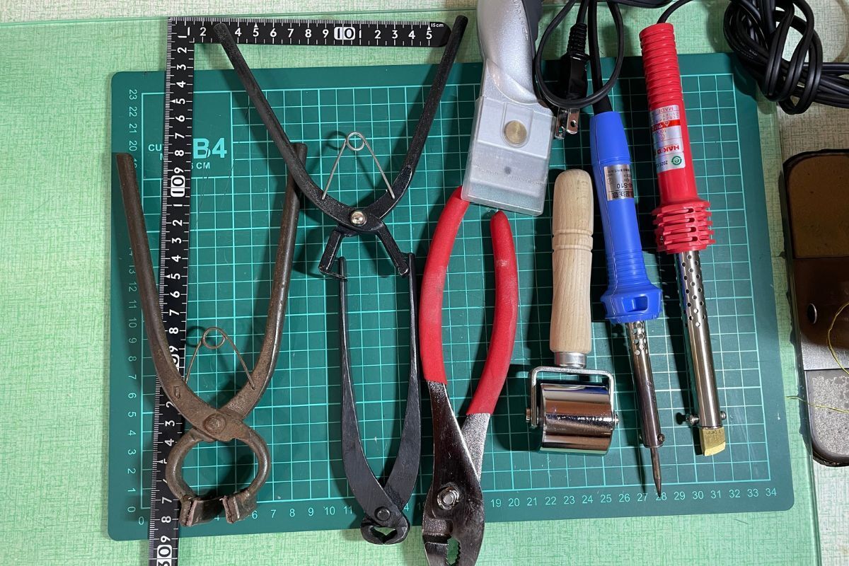 縫う部分や折り返す部分の革を薄く漉く機械です▪︎その他の工具や材料