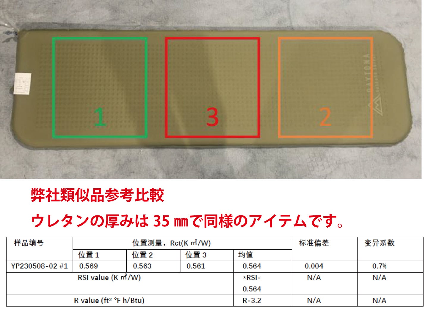 ちなみに補足ですが、弊社製の全体がウレタンタイプ3.5cm厚の商品は、3か所とも似た数値となっており、R値は3.2という結果でした。