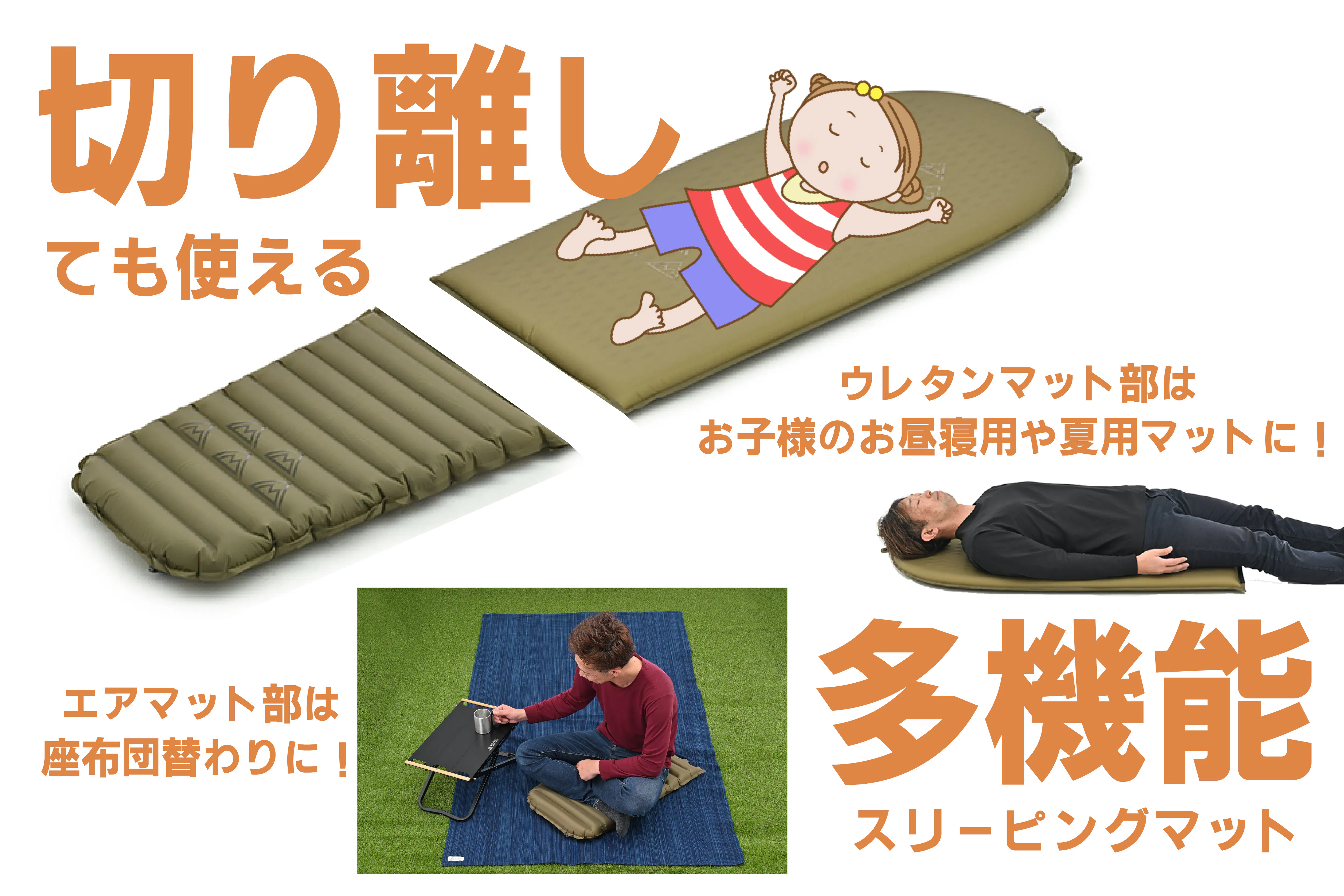 更に!ウレタンマット部分とエアマット部分を切り離せる構造だから、多機能に使えるアイテムです。