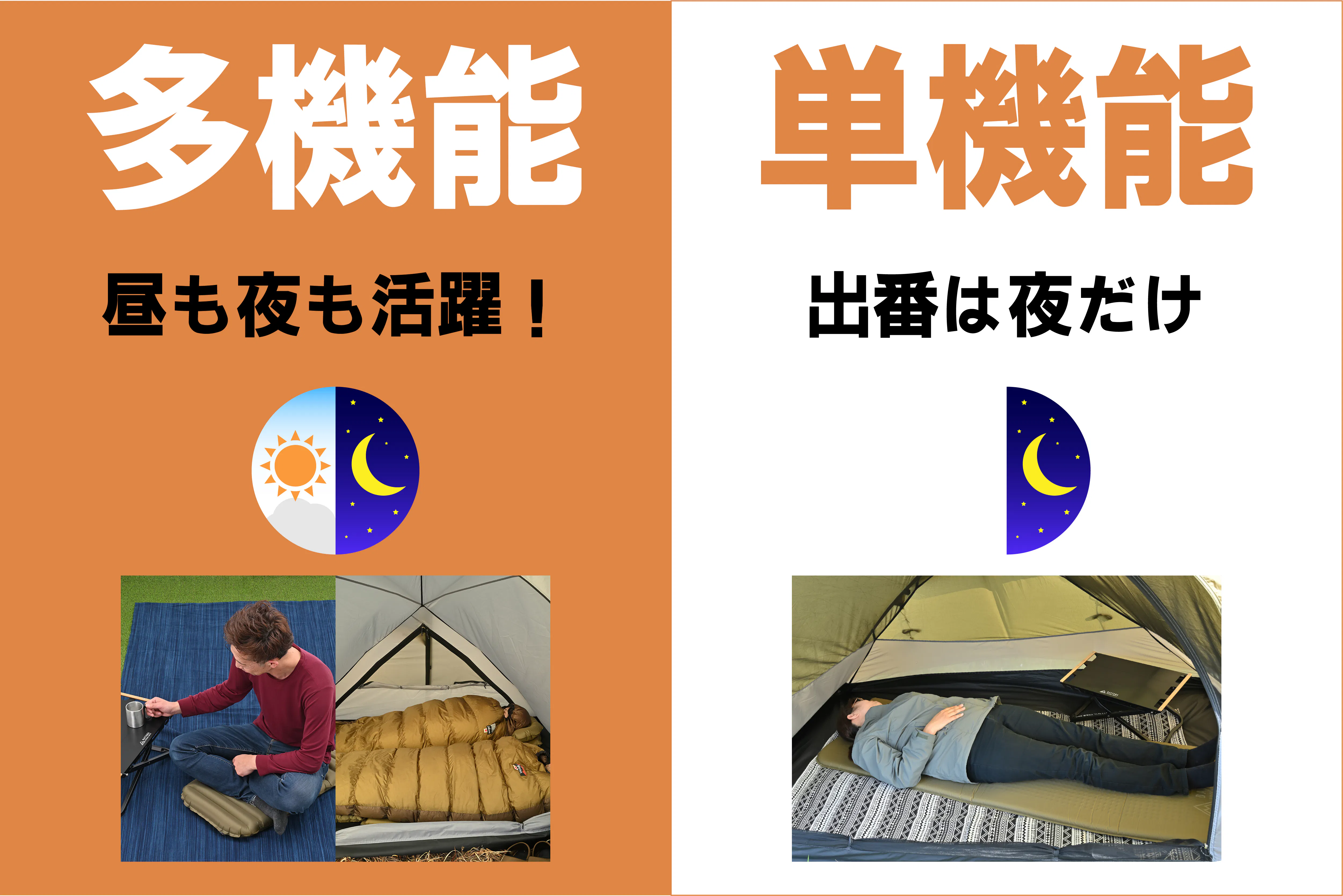 キャンプ用スリーピングマットで、寝心地と収納サイズはトレードオフの関係性にあります。