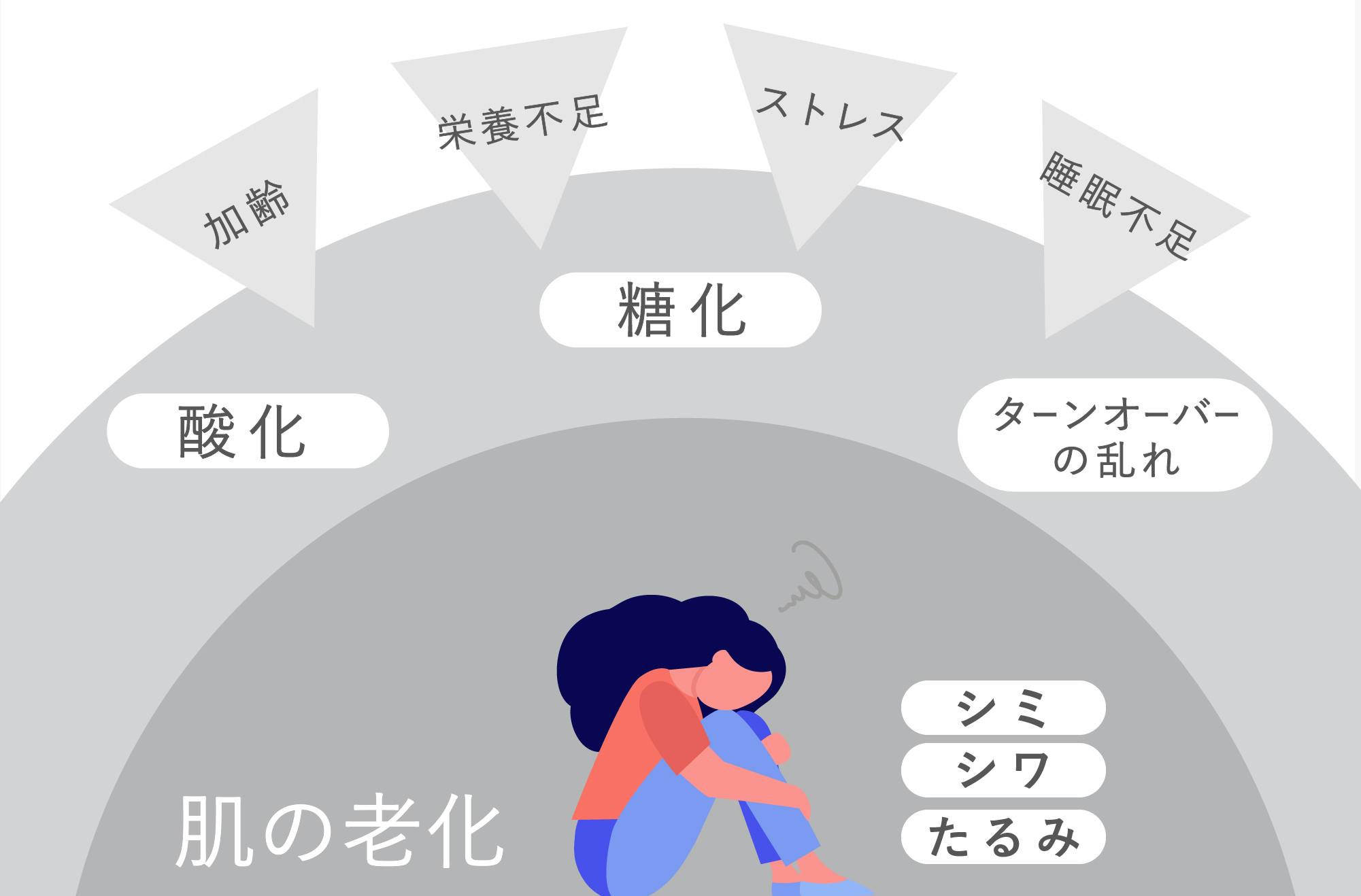 では具体的に酸化や糖化がどのように肌の老化に繋がっているのでしょうか。