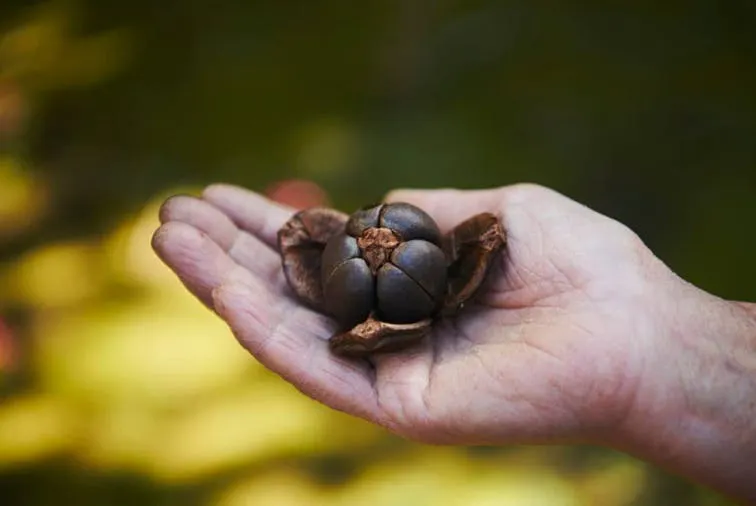 伊豆諸島の利島に自生する天然ツバキの絞り粕から生まれたサステナブルな原料。