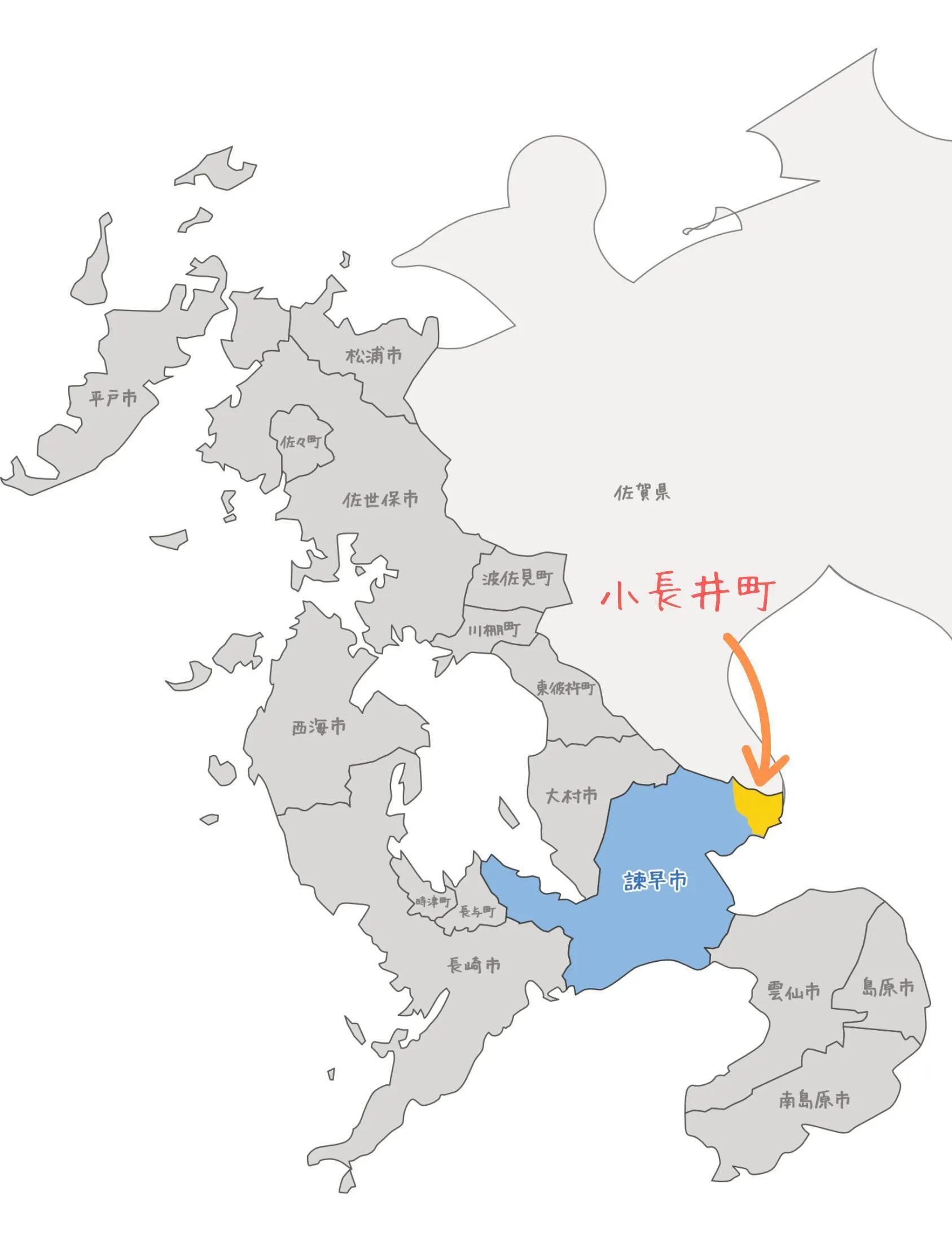 諫早市・小長井町位置マップ