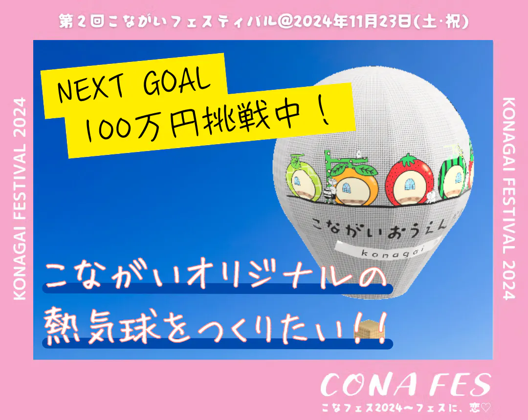 今回のクラウドファンディングで実現したいのはズバリ、こながい町おこし隊が主催する『こなフェス2024〜フェスに、恋♡』(2024年11月23日開催)にて熱気球の係留フライトを実施することです!
