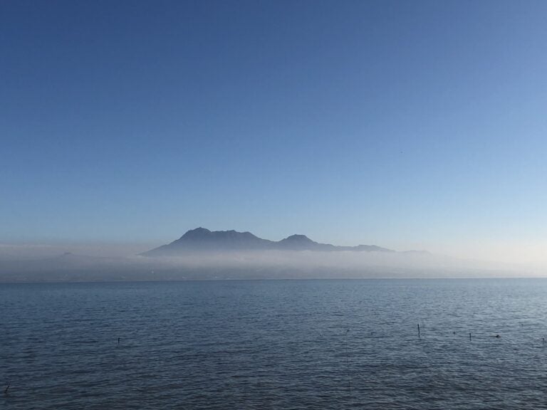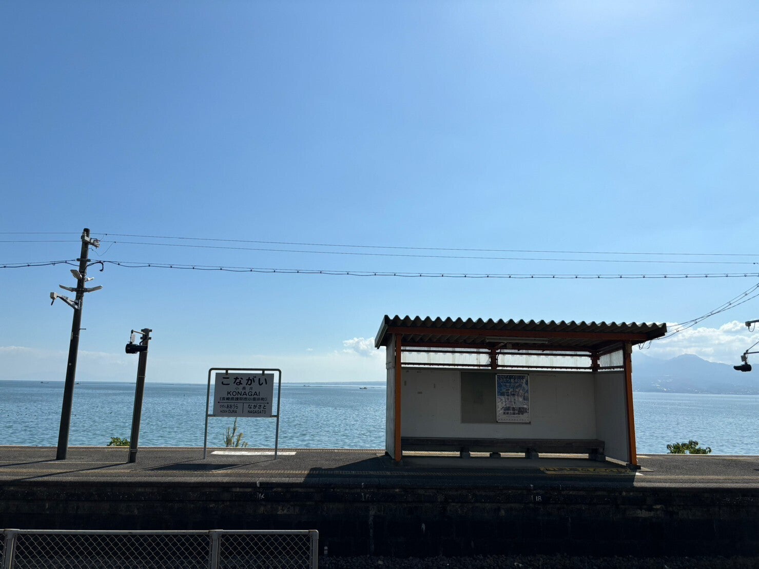 また、小長井駅は海だけでなく、対岸に見える雲仙普賢岳の景色も大きな特徴です。