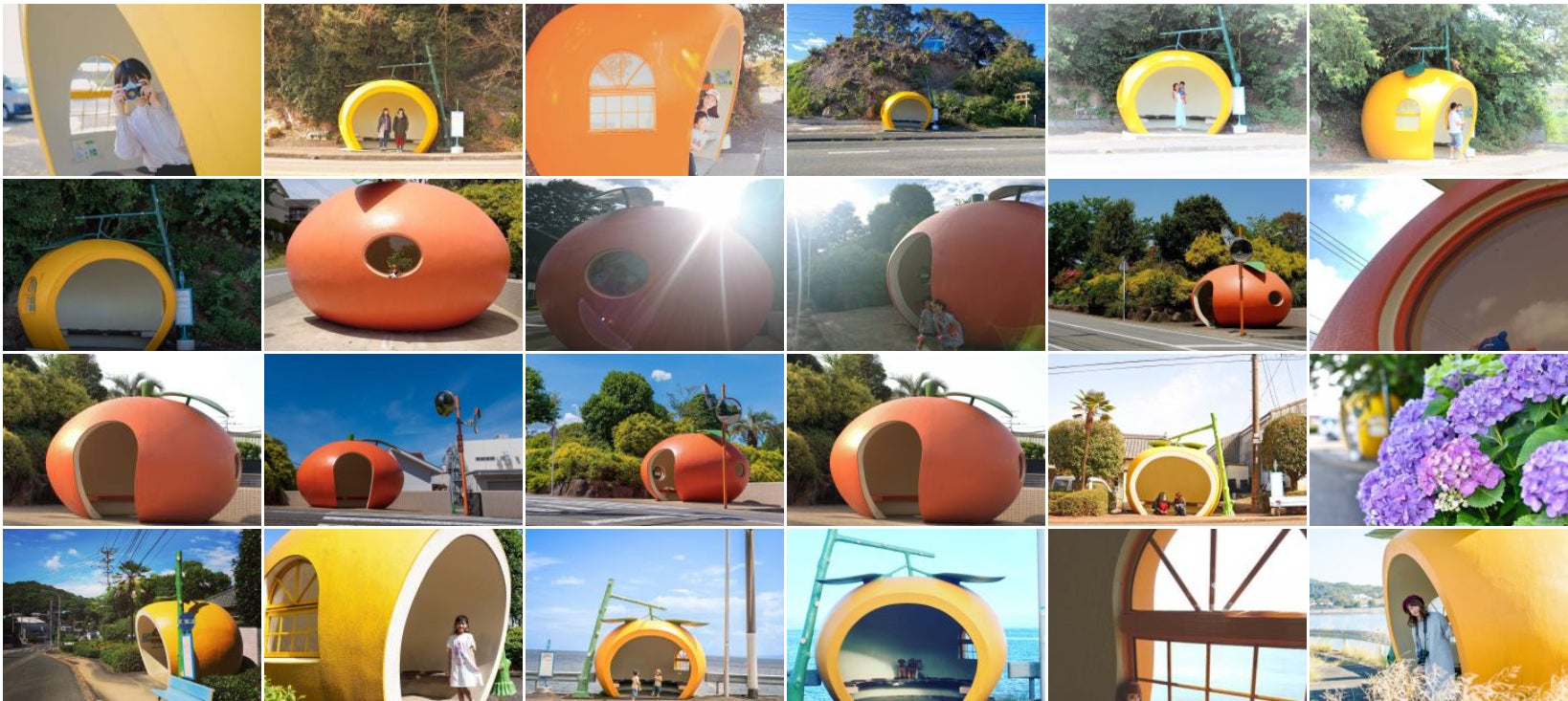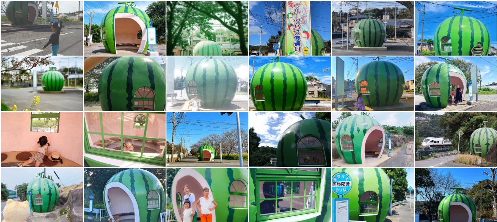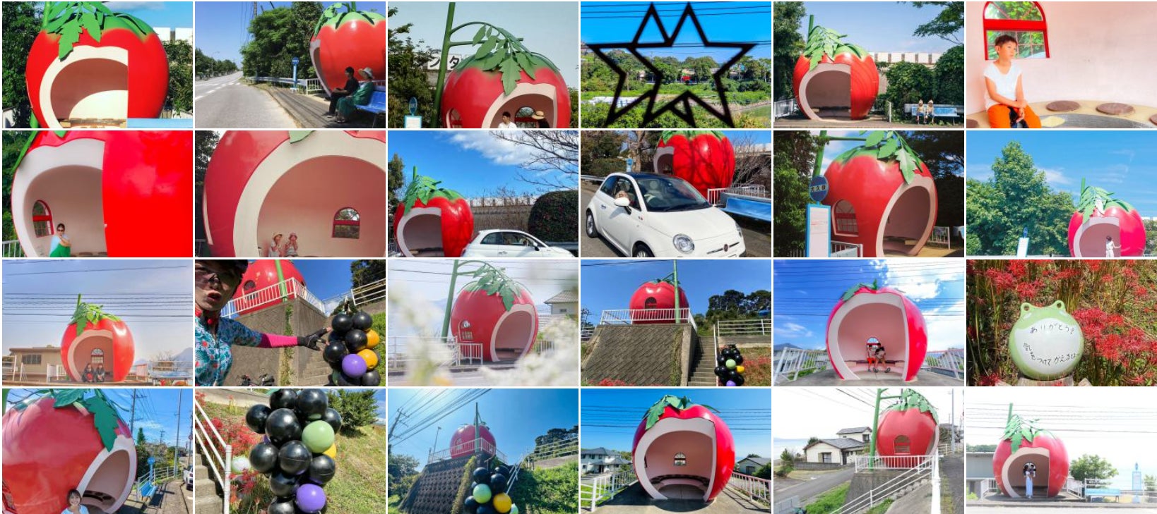 フルーツバス停は全5種類(イチゴ、メロン、ミカン、スイカ、トマト)、計16基設置されています。