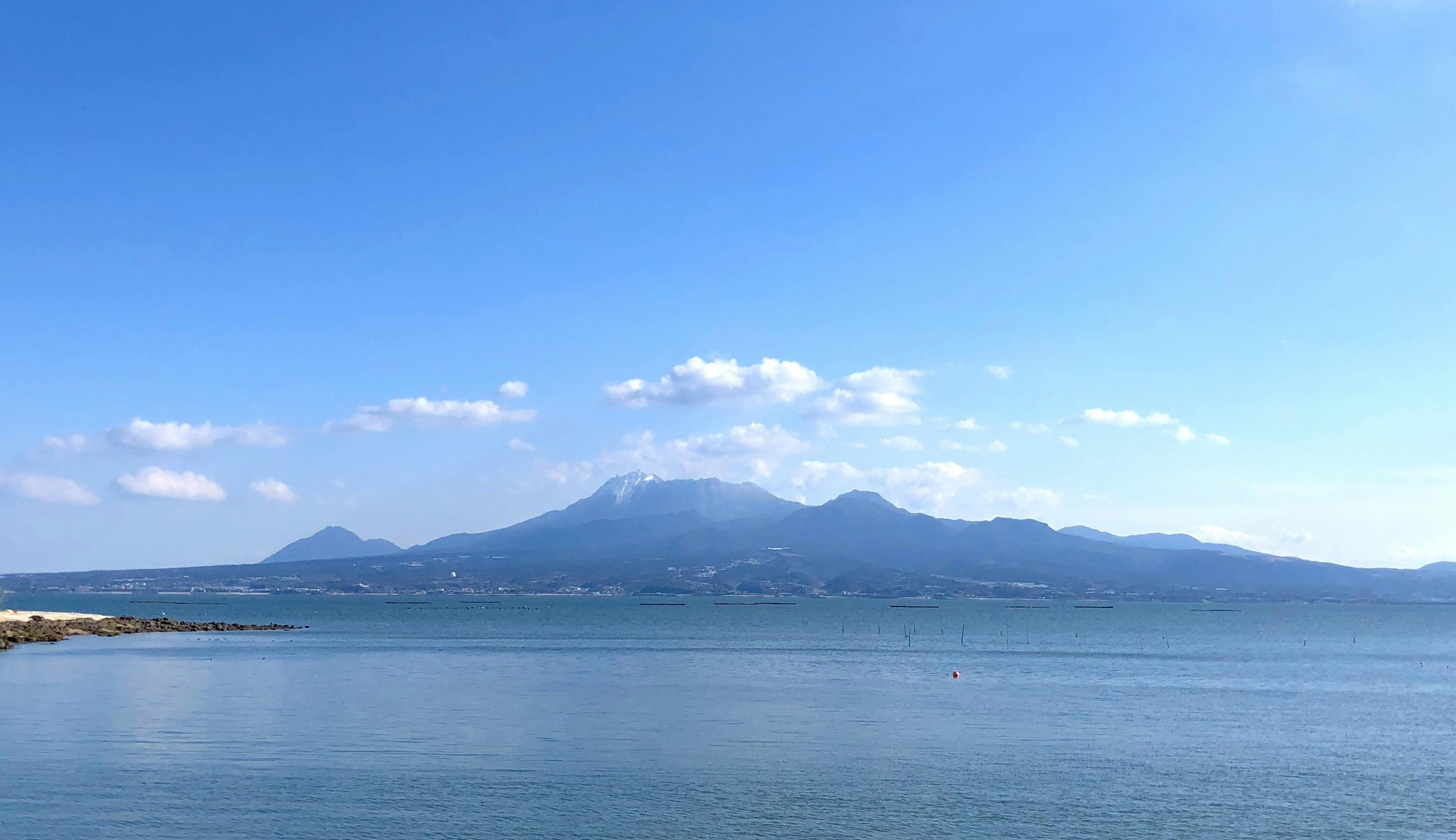 有明海を挟んで真向かいに悠然とそびえる雲仙普賢岳。