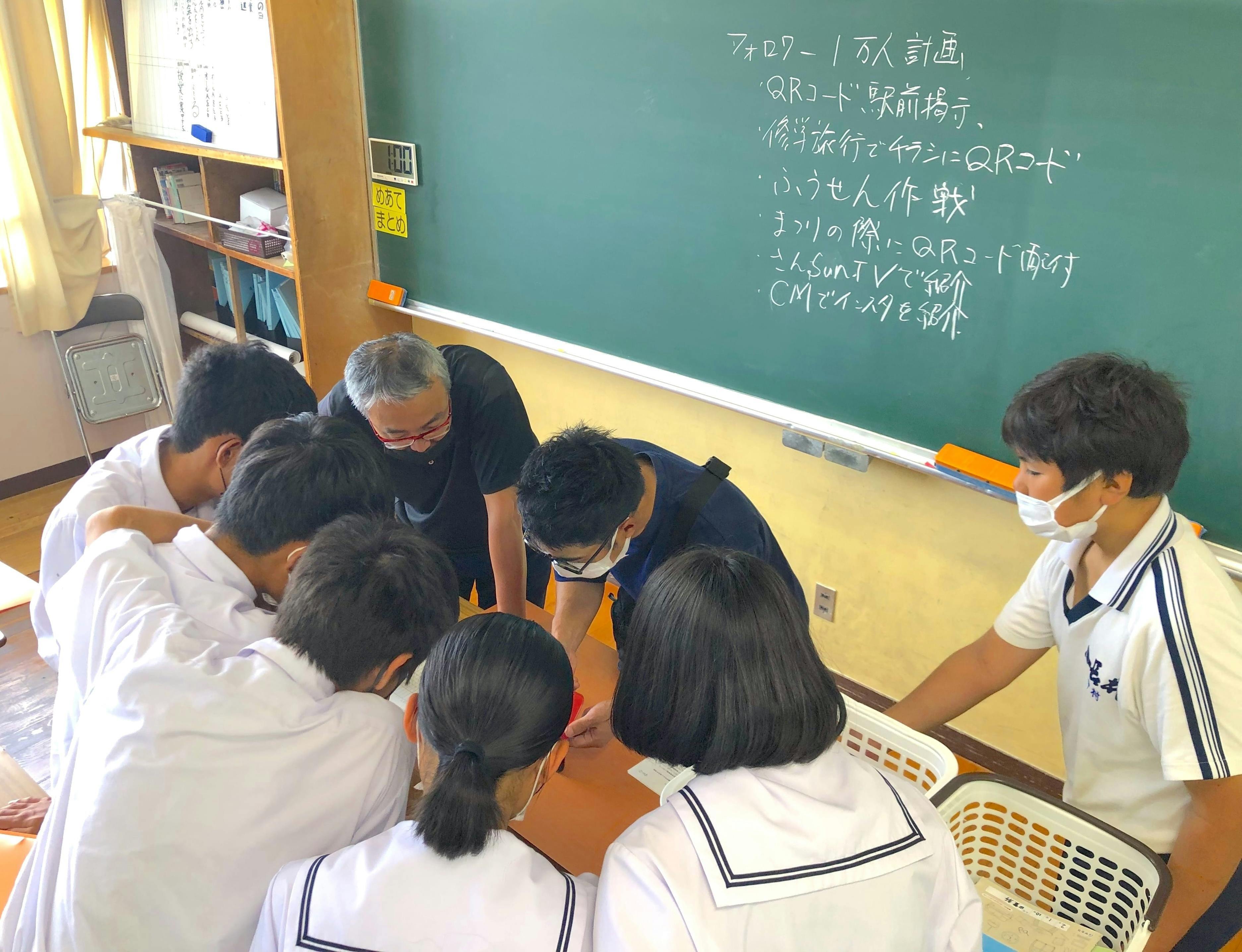 「ふるさとの新たな魅力を創出するキャリア教育実践事業」の一環として、小長井中学校3年生が地元特産品をPRする「ときめき小長井市(いち)」のイベント実行委員・出店事業者として町おこし隊が参画。その後、デザイン・SNS運用・動画制作などの特別授業も実施させていただきました。