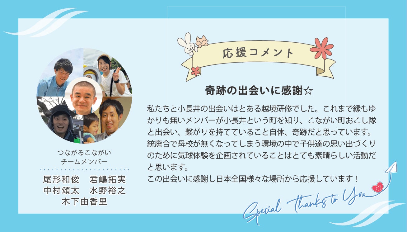 そこでぜひ皆さまから温かいご支援をいただき、少しでも多くの笑顔を空に舞い上がらせたいと思っています!
