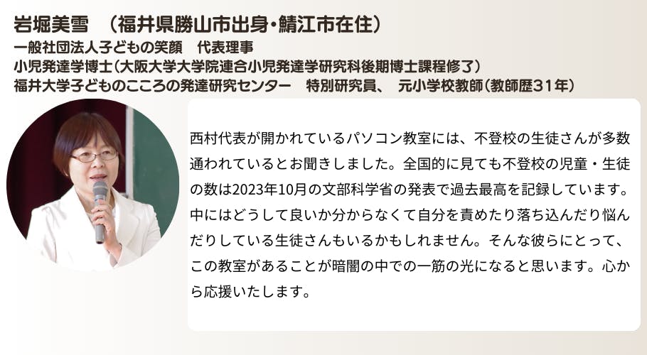 「自分には何もなかったからこんな思いに辿り着けたのだと思います。IT教育、デジタルリテラシーの“場”を作ることで、この福井の教育レベルを引き上げるお手伝いができれば、と思っています」