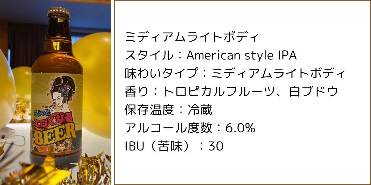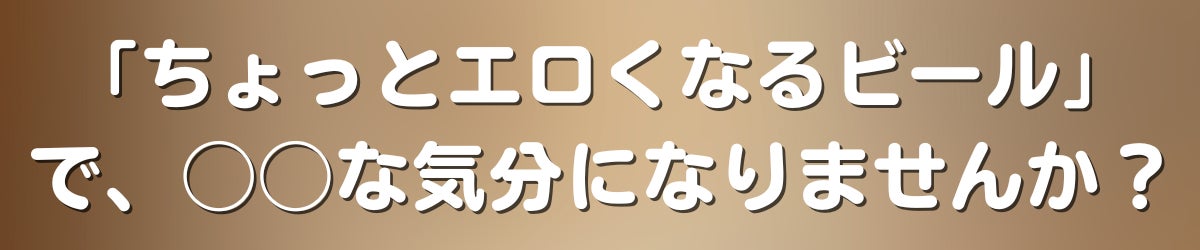 「ちょっとエロくなるビール」で、フルーティな香り、スッキリとしたキレのある味わい、そして、”◯◯な気分”を味わってみませんか?(○◯は、皆さまのお好き気分をぜひ当てはめてみてください!)