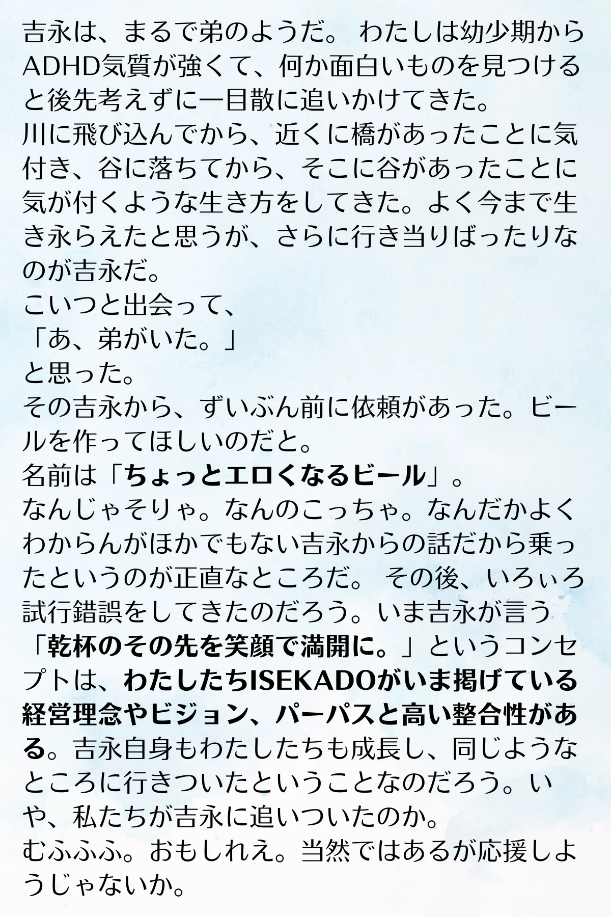 そんな「想い」を込めて「ちょっとエロくなるビール」を作りました!!