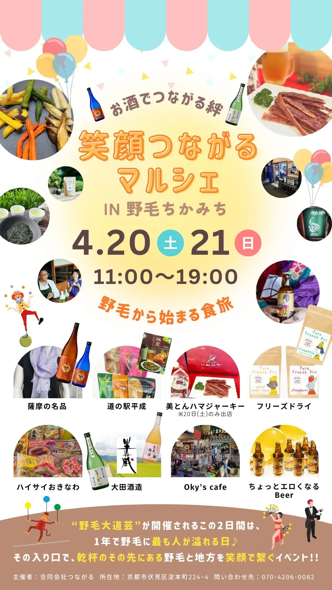 2024/04/20 08:00本日から2日間、JR桜木町駅から数十秒の「野毛のちかみち」にてマルシェ開催します!!ここまでなかなか長い道のりでしたが、初めてのチャレンジ、天気も味方してくれてるみたいです!そして今日は、野毛の街で40年続く「野毛大道芸祭」の日でもあります!ビールや日本酒、焼酎におつまみ盛りだくさん♩ぜひ、みなさまお出かけくださいませ!! もっと見る