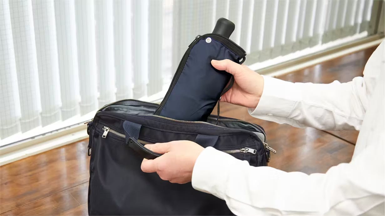 casara caseはこんなわずらわしさを解決。濡れたままサッと入れて、そのまま1時間でほぼ乾燥。ビニール袋に入れて持ち歩いていた、あなたの折りたたみ傘ライフを変えます!