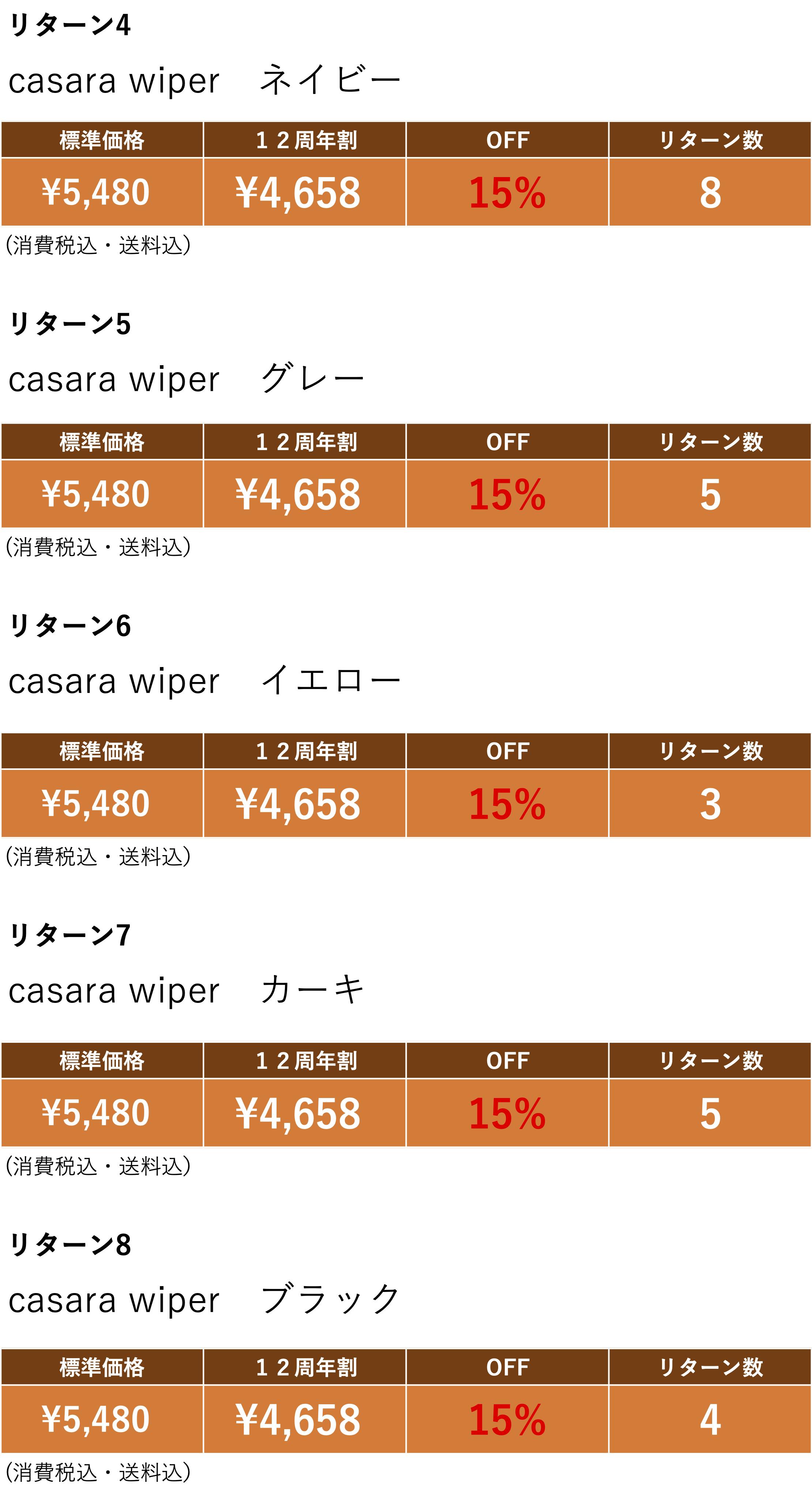 汚れが気になったらカバーは洗濯、インナーは自然乾燥。casara wiper は使い捨てではありません。