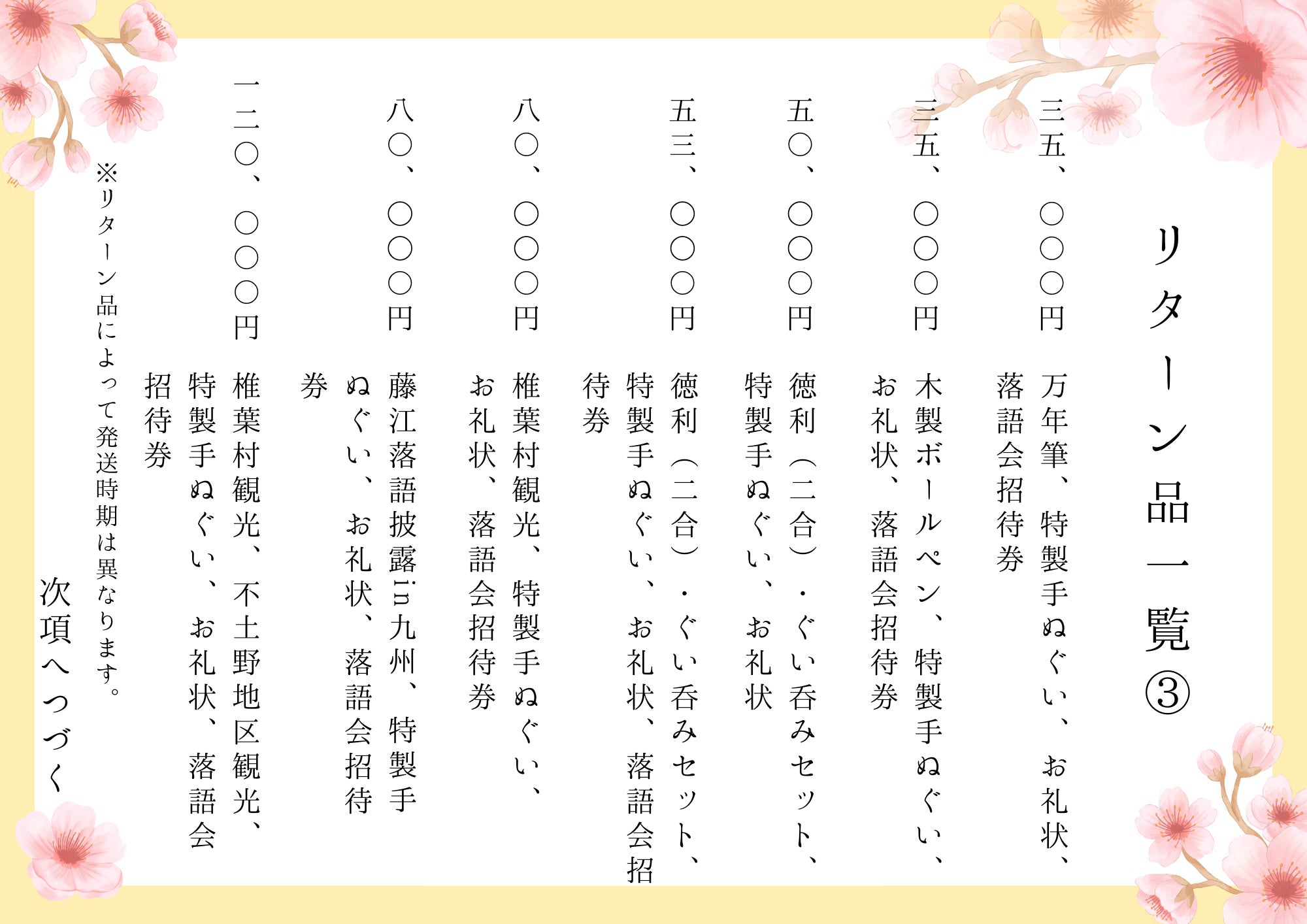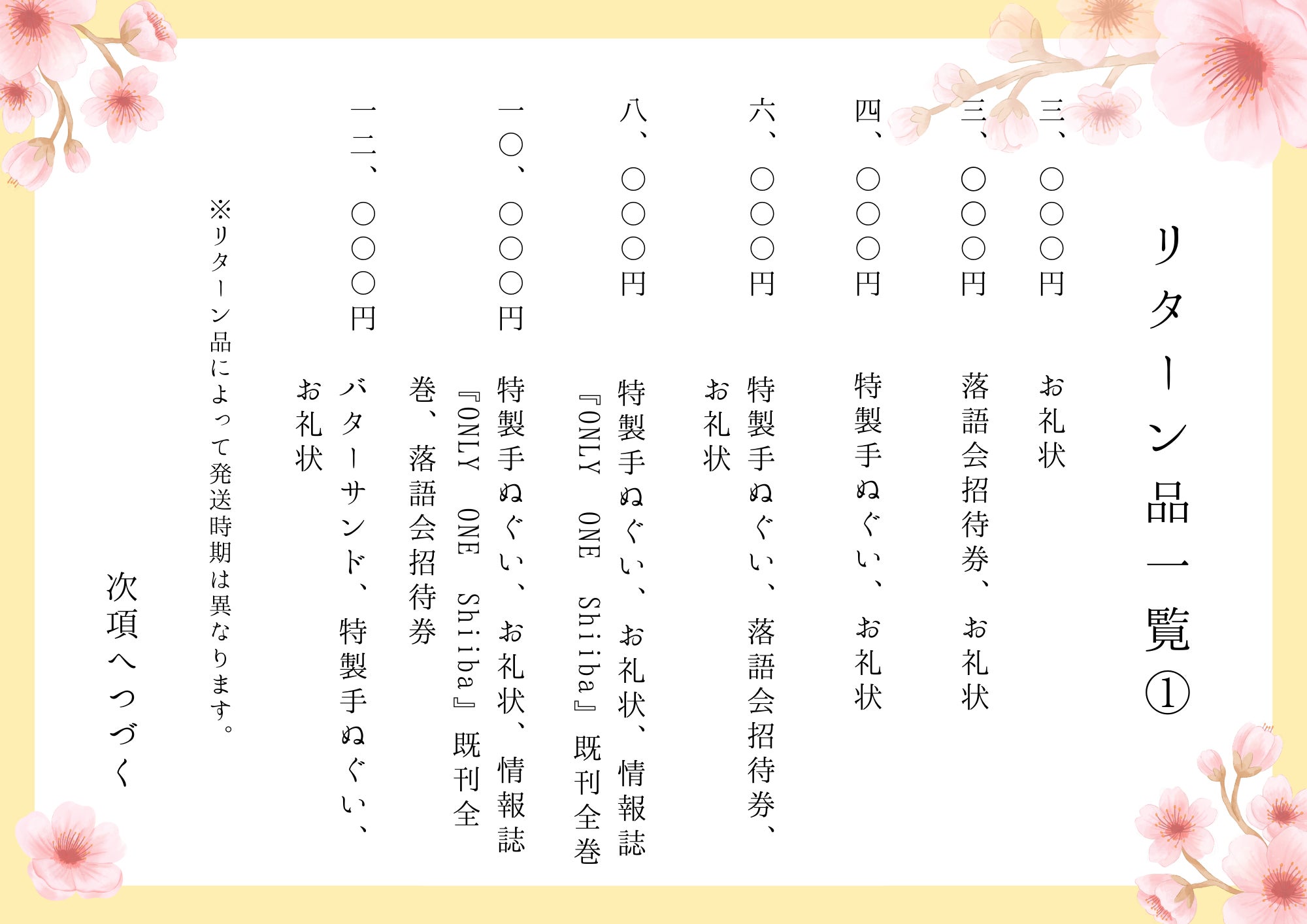 ・2024年10月以降:順次リターン、実施・発送、落語会開催準備