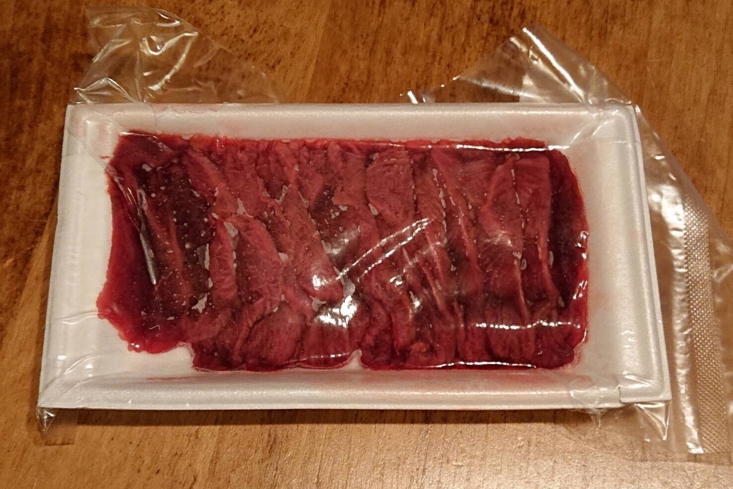野菜に火が通ったら、解凍した鹿肉を鍋に入れて火を通します。鹿肉は火を通しすぎると固くなりますので、食べる直前にさっと色が変わる程度に火を通していただくのがお勧めです。