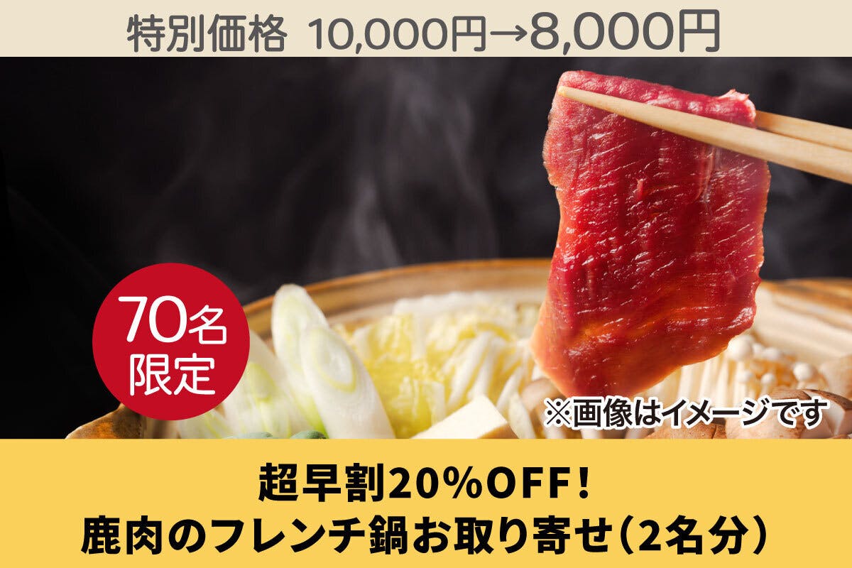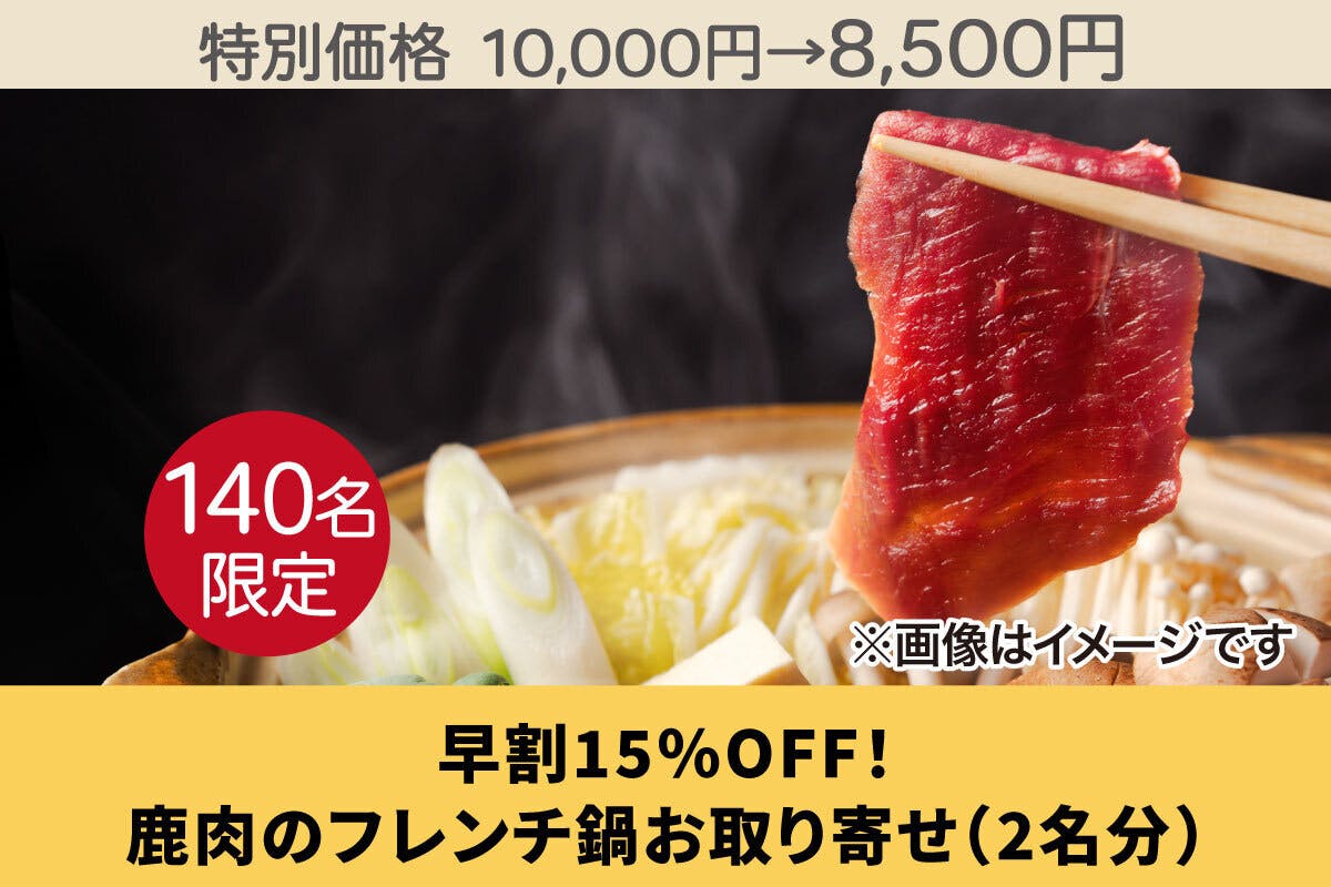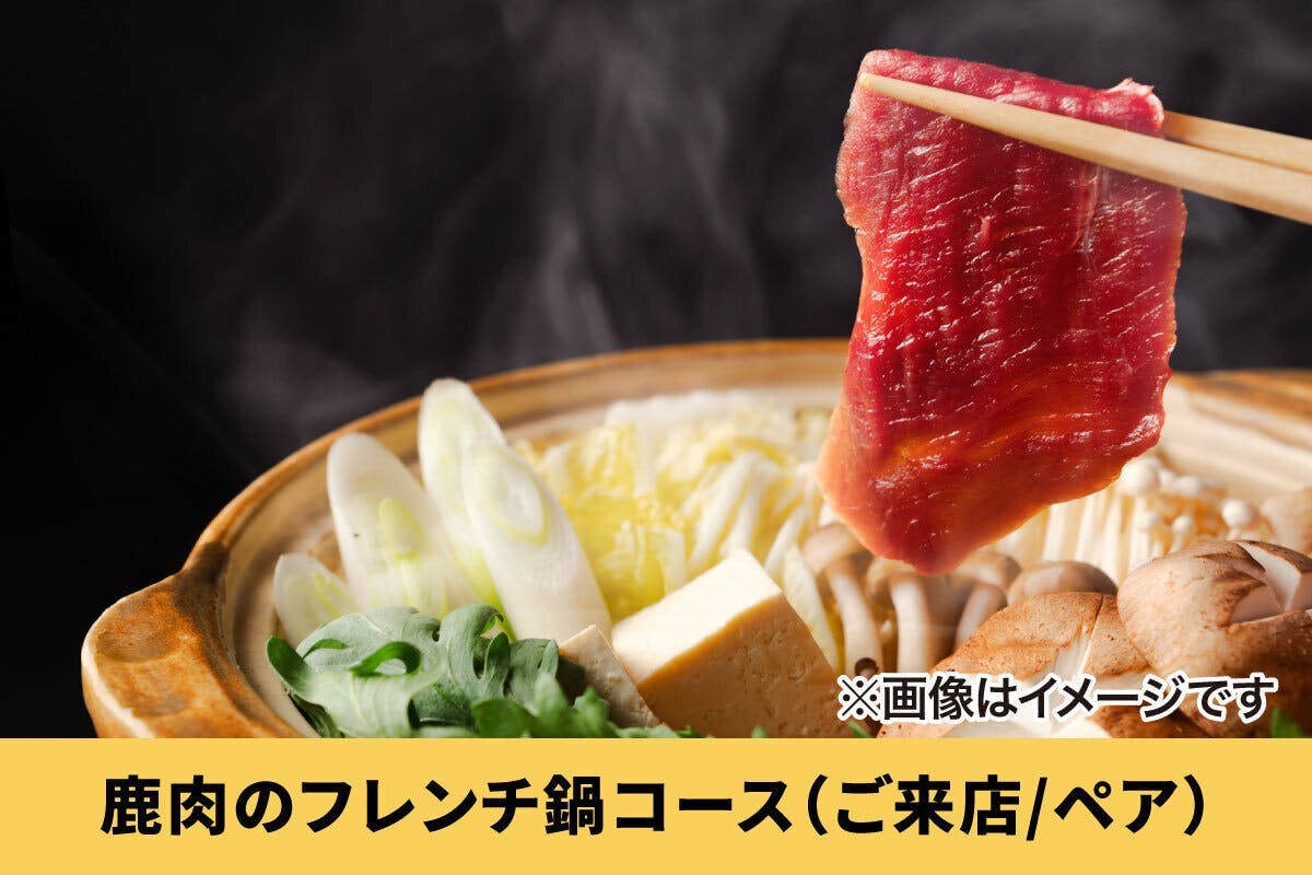 お店でいただくスタイルをご希望の方は、【ペア】鹿のフレンチ鍋コースをお選びください。もう一つ、Bistro AMIスペシャルコースもご用意しました!どちらも2名様でのご予約となります。