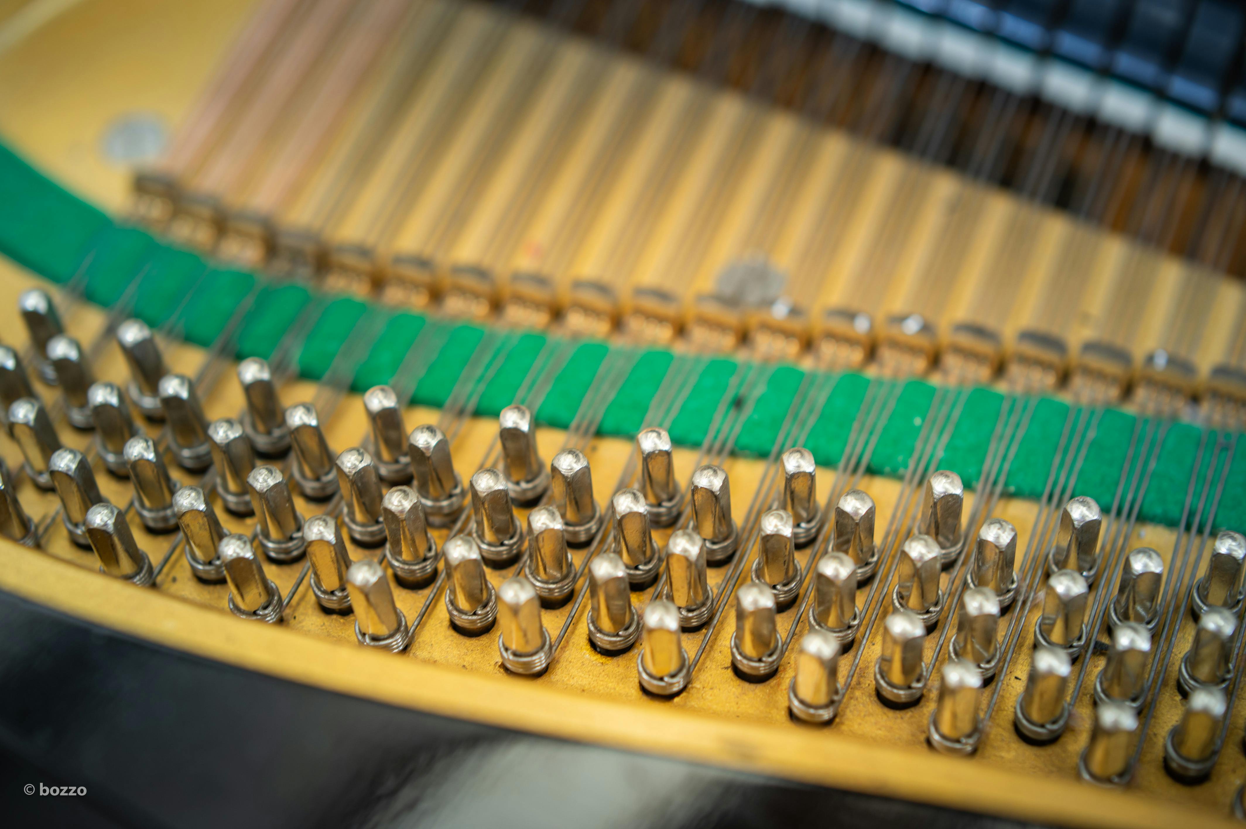 2025/08/16 23:26調律師の松本安生さんがオーバーホールの前段階として、状態をチェックしに来ました。松本さんの手によって細かに分解され、100年前の息吹がそこかしこに漏れる気配を感じた3時間。1㎜ほどの狂いも許さないピアノ設計の精密さも然る事ながら、100年前の手仕事とは思えぬ根気の要る調整の数々、それをこの100年間さまざまな人々の手によって修繕されてきた痕跡を見ると、楽器もまた人の身体と同じように、絶妙なバランスで生きているのだ…と実感しました。何しろ弦の張力が1本80㎏以上、全体で20tもの張力が鋳鉄やピン板に掛かっており、それを解くことで筐体そのものが崩壊する可能性もあり、豊かな経験と感性がモノを言う仕事。⇒松本さんによれば、少なくとも一度は弦を総入れ替えしているとのこと。 鍵盤のセラミックやハンマーヘッドも交換されているそう。 清水さんご夫妻がご尽力されたに違いありません。今回の修繕ではピン板(弦を張りを保つピンをトルクで支える板)が重要なポイントとなっており、音色の個性を生み出すところとして国産ではなくドイツ製の板でなければならない…と松本さん。その土地の風土で育った木を使うことで、ドレスデン生まれの『100歳ピアノ』は本来の音色を響かせるのだ…というお答えが、この短絡的社会の近視眼的思考に冷や水を浴びせるようで、非常に印象的でした。田中音友堂の田中直彦さんと岩井社長、調律師松本安生さん。いやはや本物であろう…とする指向性こそが、人を育てるのだと心底思った次第です。このあと、部品調達や塗装のタイミングなど細やかな設計をして、『100歳ピアノ』はいよいよ長い修繕期間に入ります。また報告いたします。【bozzo】#photobybozzo もっと見る「100歳ピアノ誕生プロジェクト」進捗のご報告