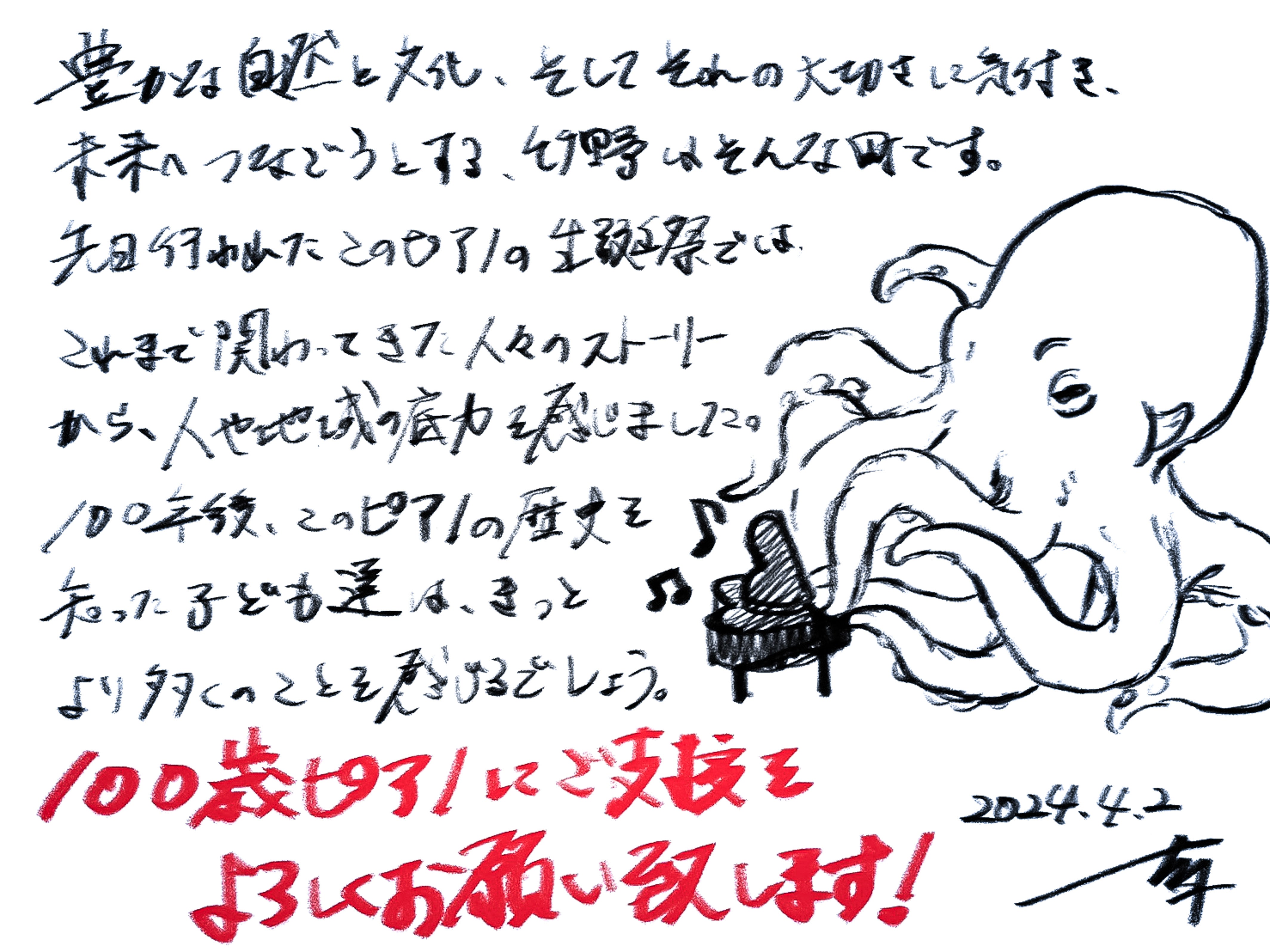 『100歳ピアノ』を弾いてるタコに、力もらいました!
