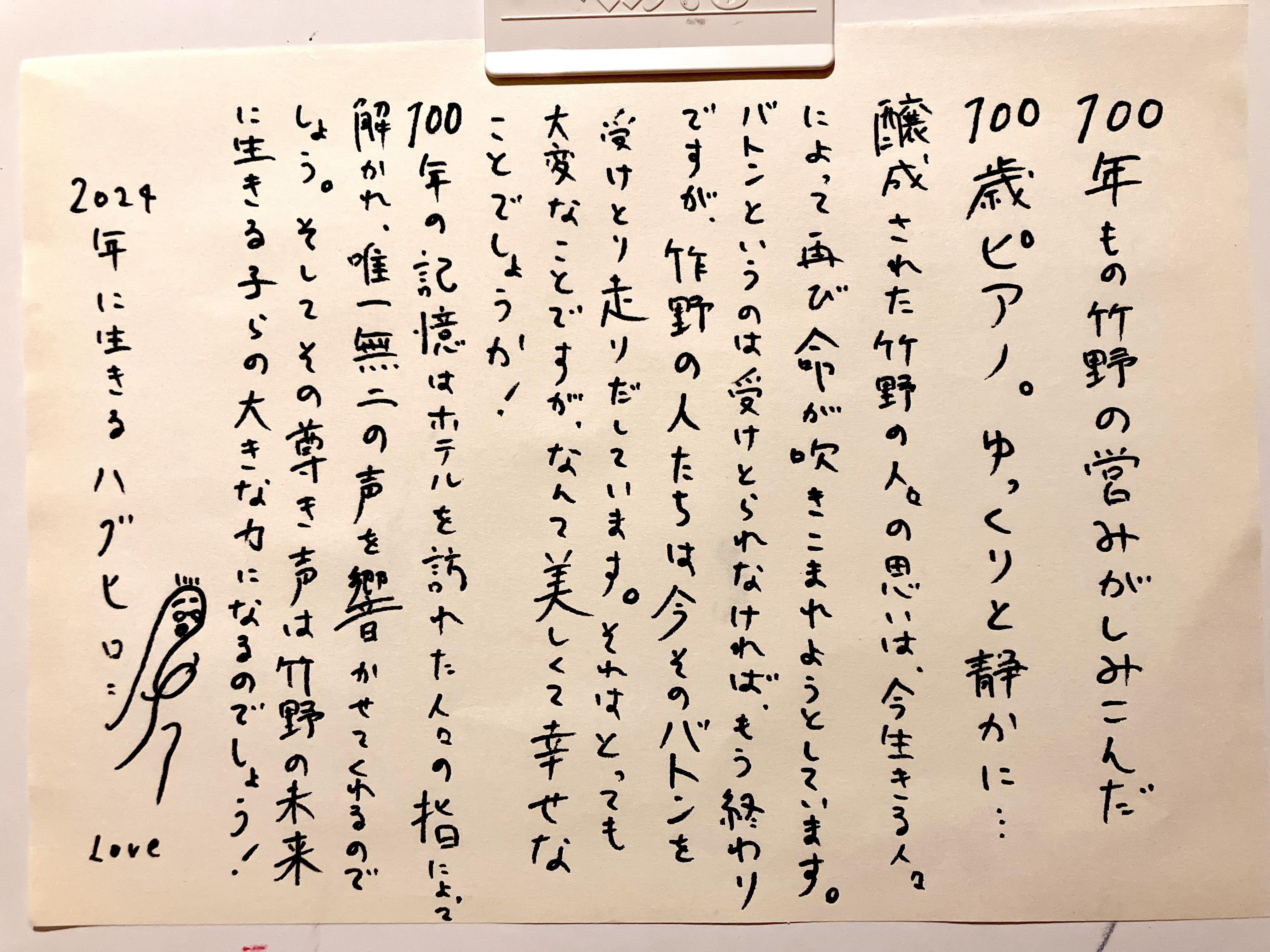 100年もの竹野の営みが染み込んだ100歳ピアノ。